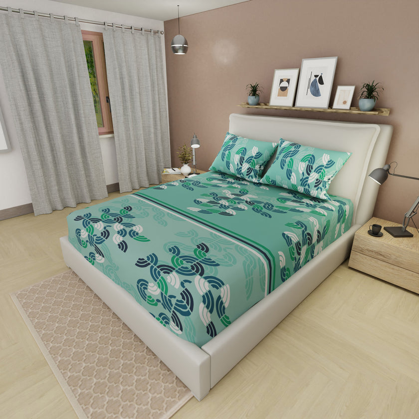 Sabana Ajustable Diseño Armonía Semi Circular Azul