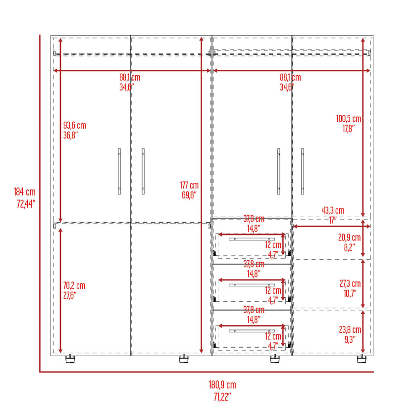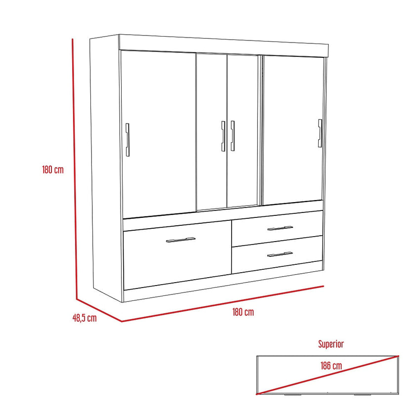Closet Fontan 180 X 150 X 50 Rta Milan + Blanco