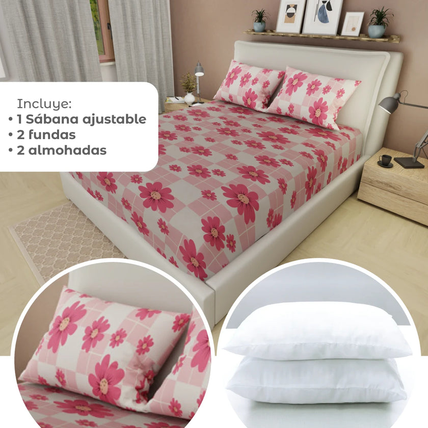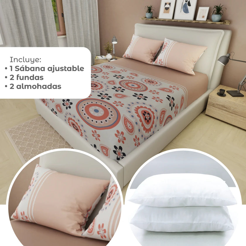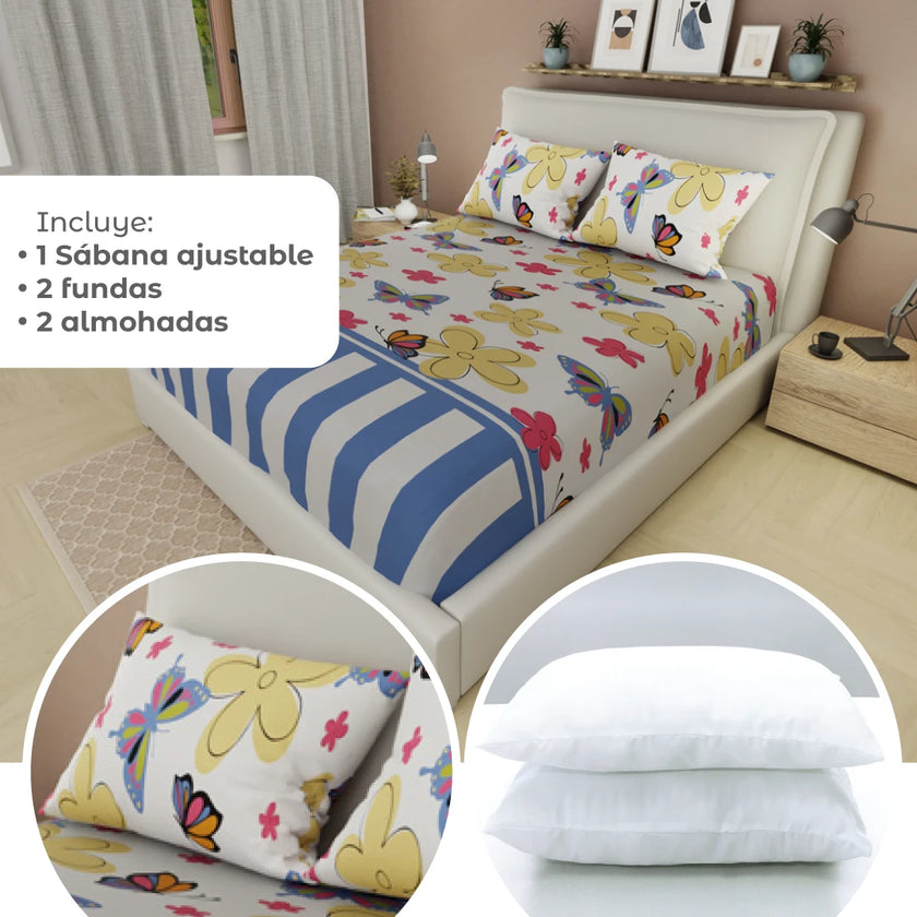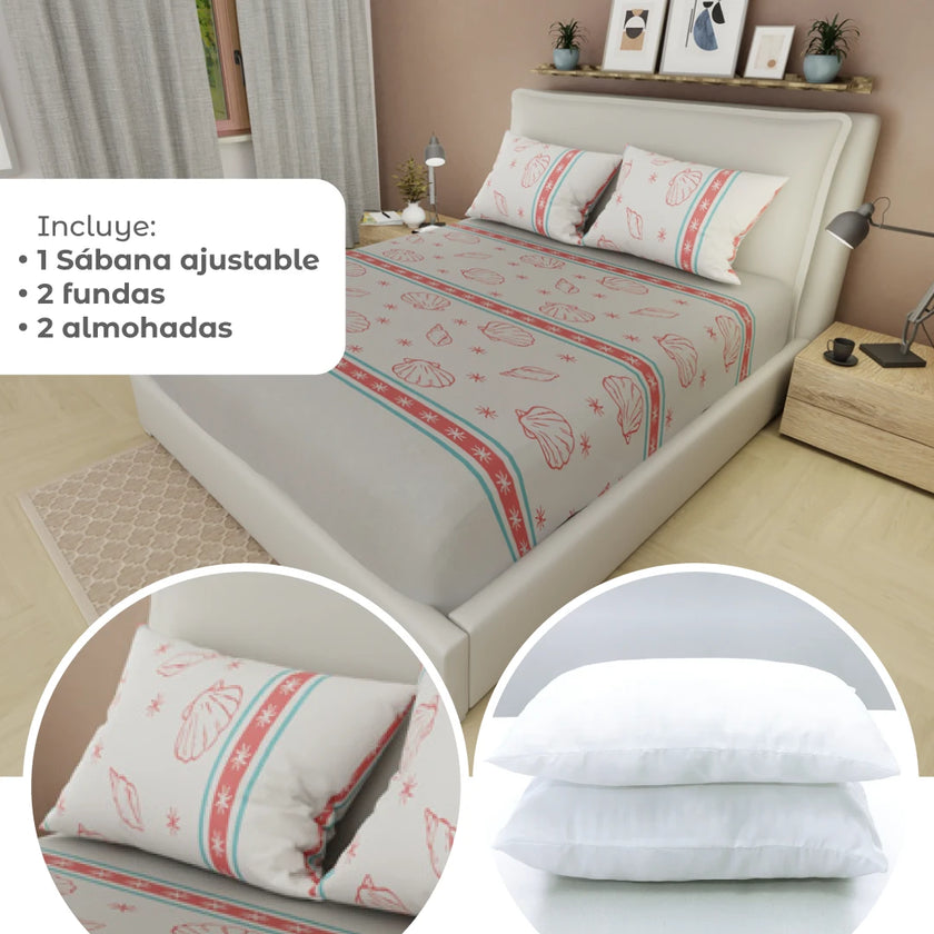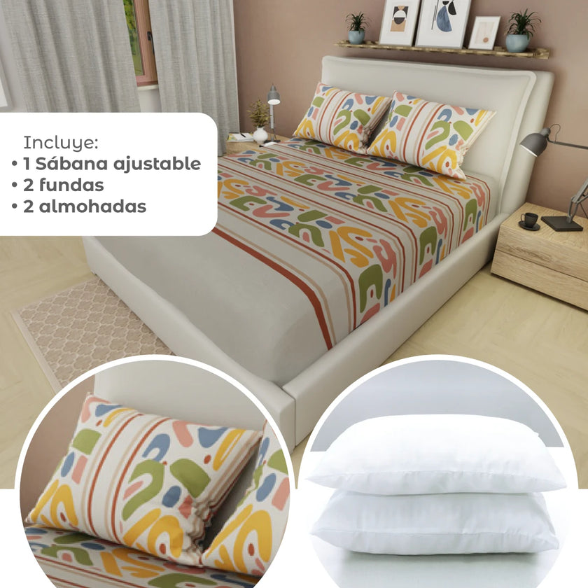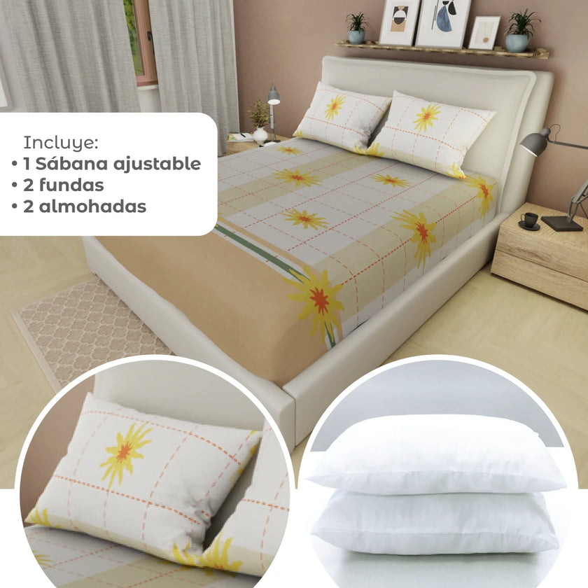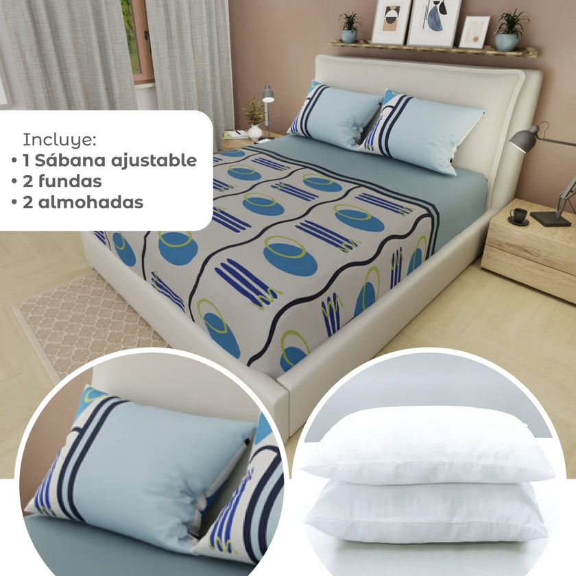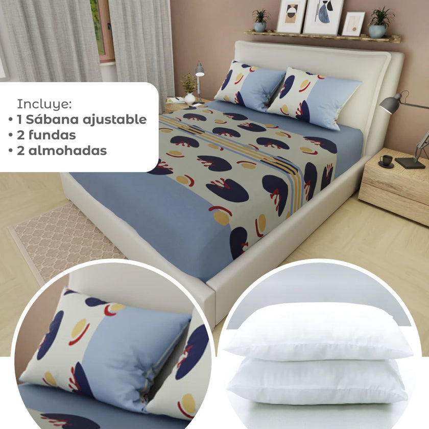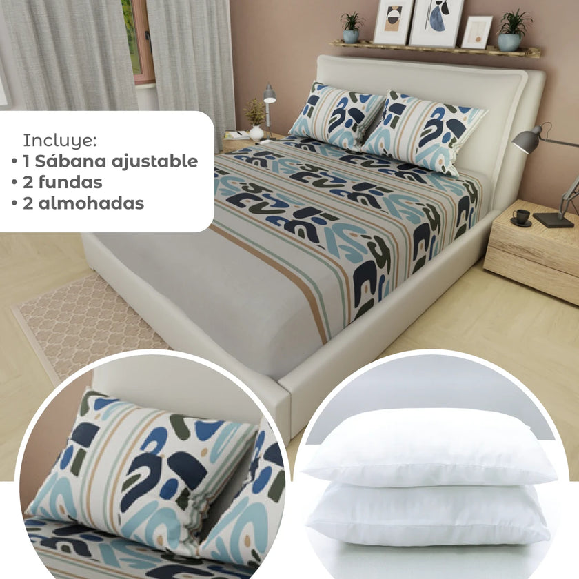 Transforma tu descanso con el Combo 5 en 1: incluye una sábana ajustable, dos almohadas y dos fundas, todo en un solo set práctico y moderno. Perfecto para renovar tu cama con suavidad, diseño y confort. Compra online en tuhogaronline.com con envío rápido y seguro.