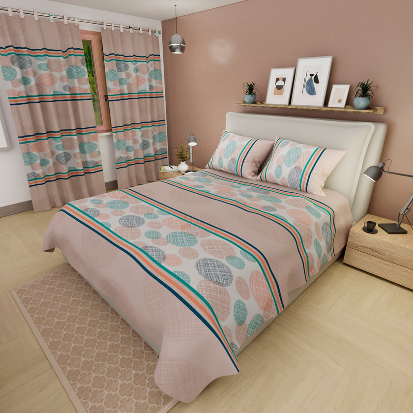 Juego De Sábanas Con Cortinas Beige Círculos En Rayas Ultra Suave