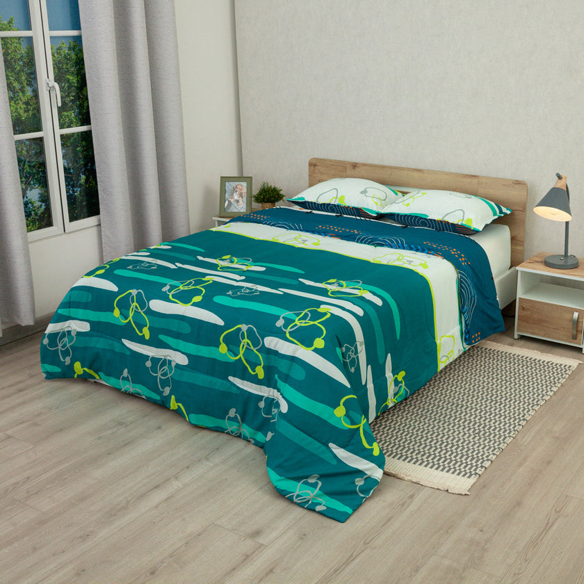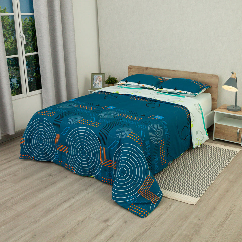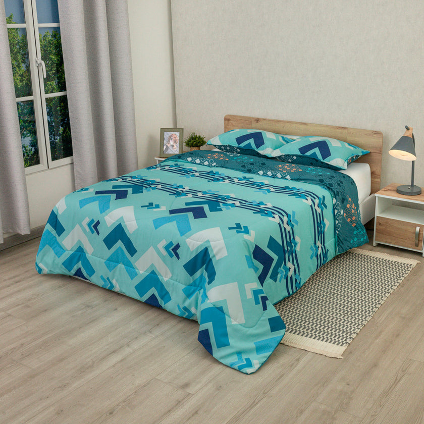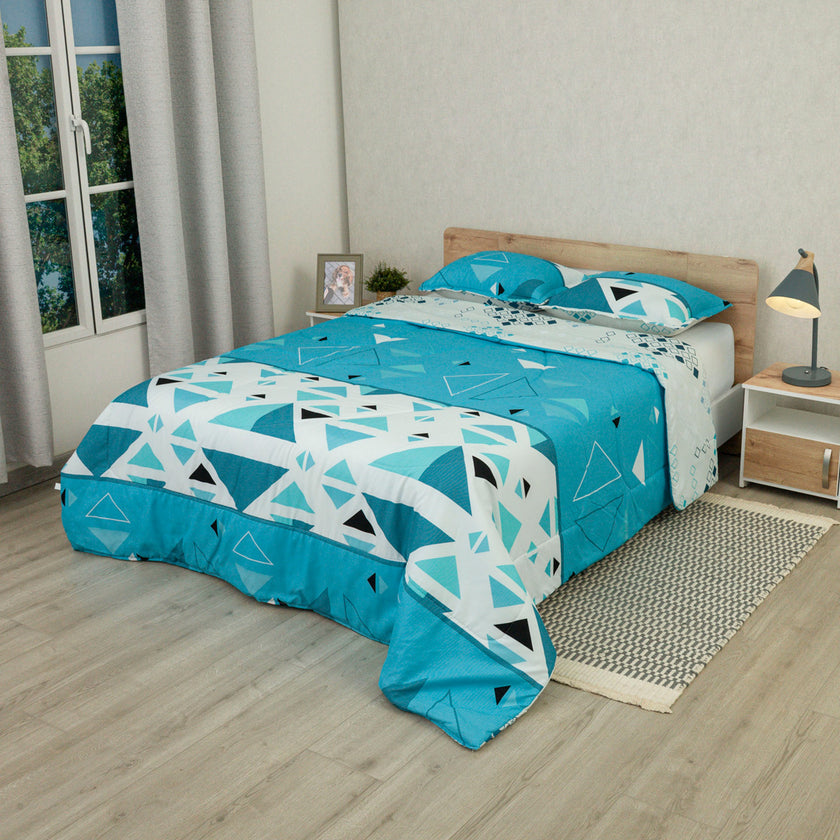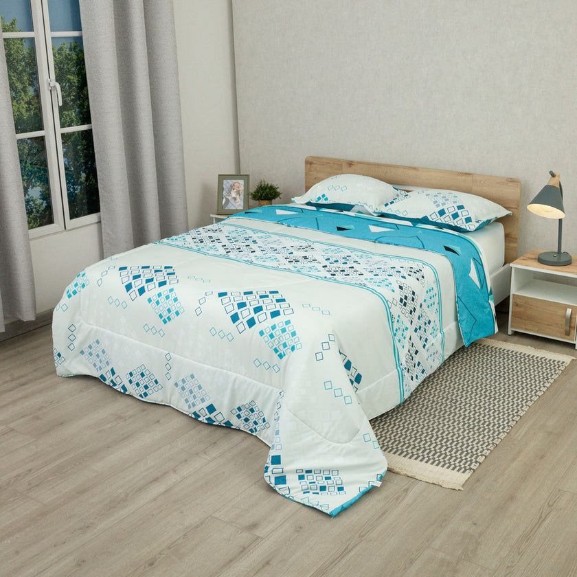 Cubrelecho Semiacolchado Doble Faz Fusión Moderna Blue