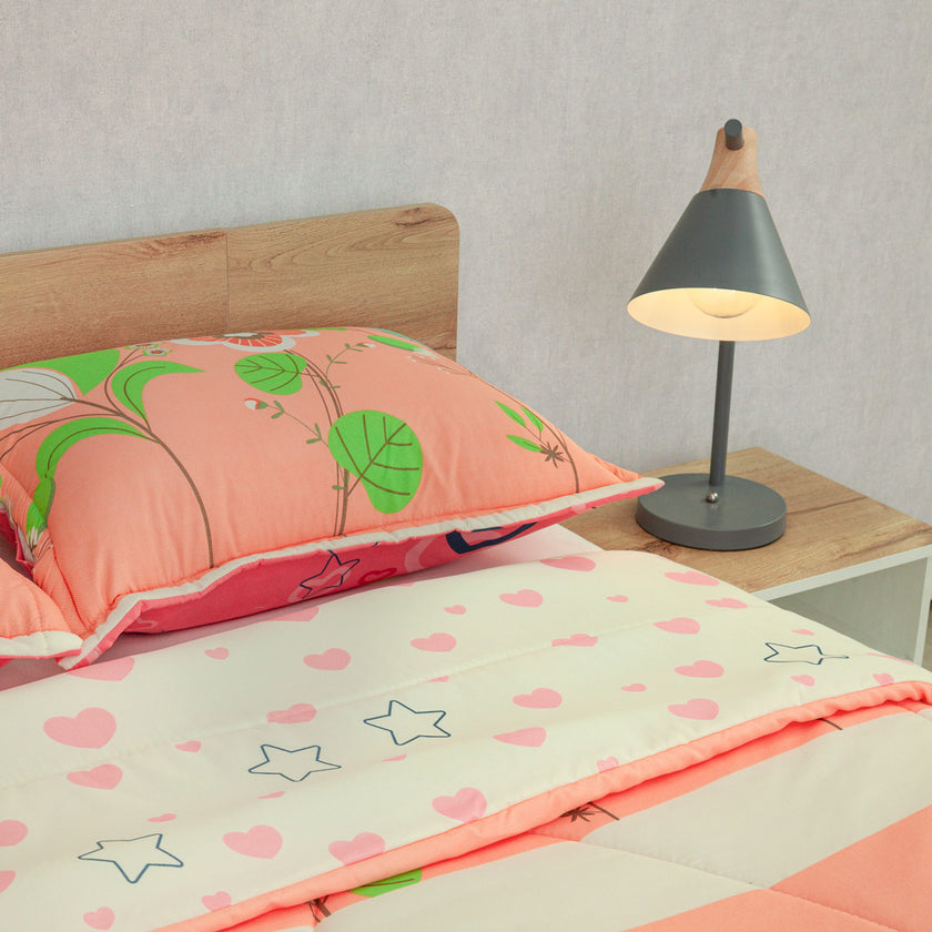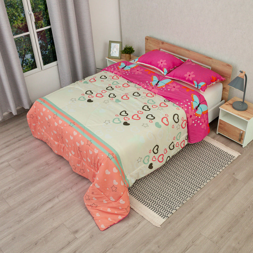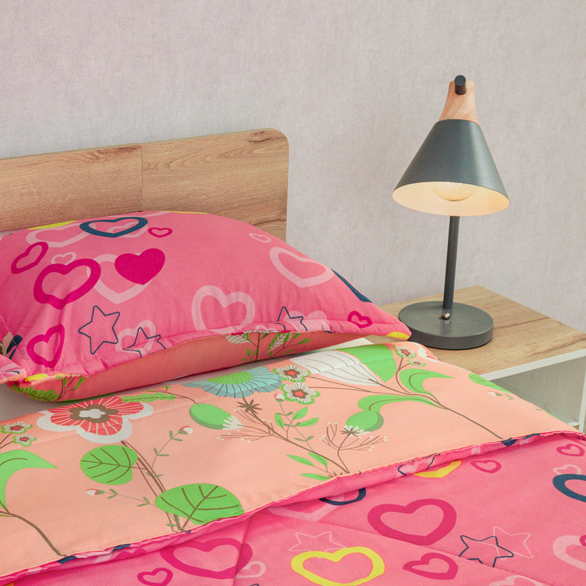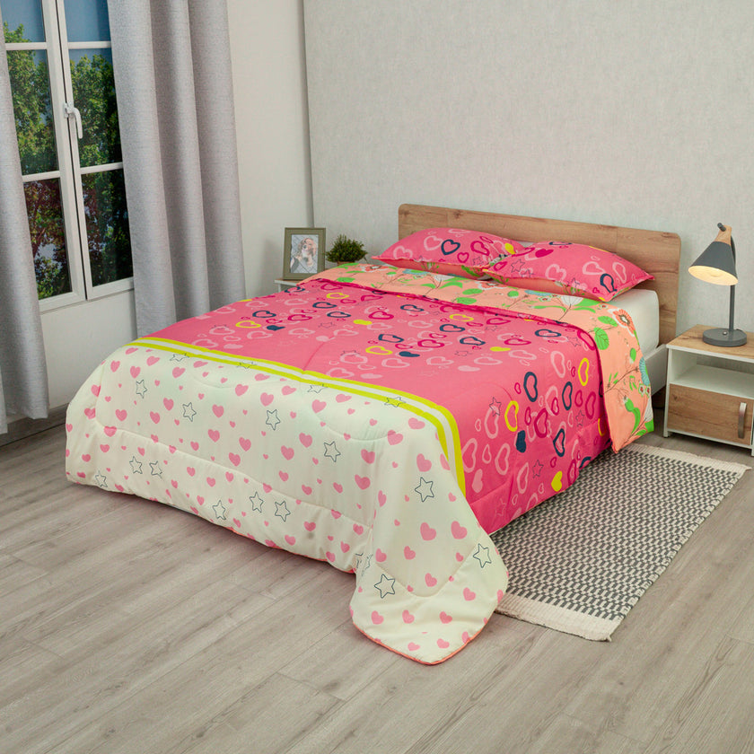 Cubrelecho Semiacolchado Doble Faz Explosión De Amor Rosa