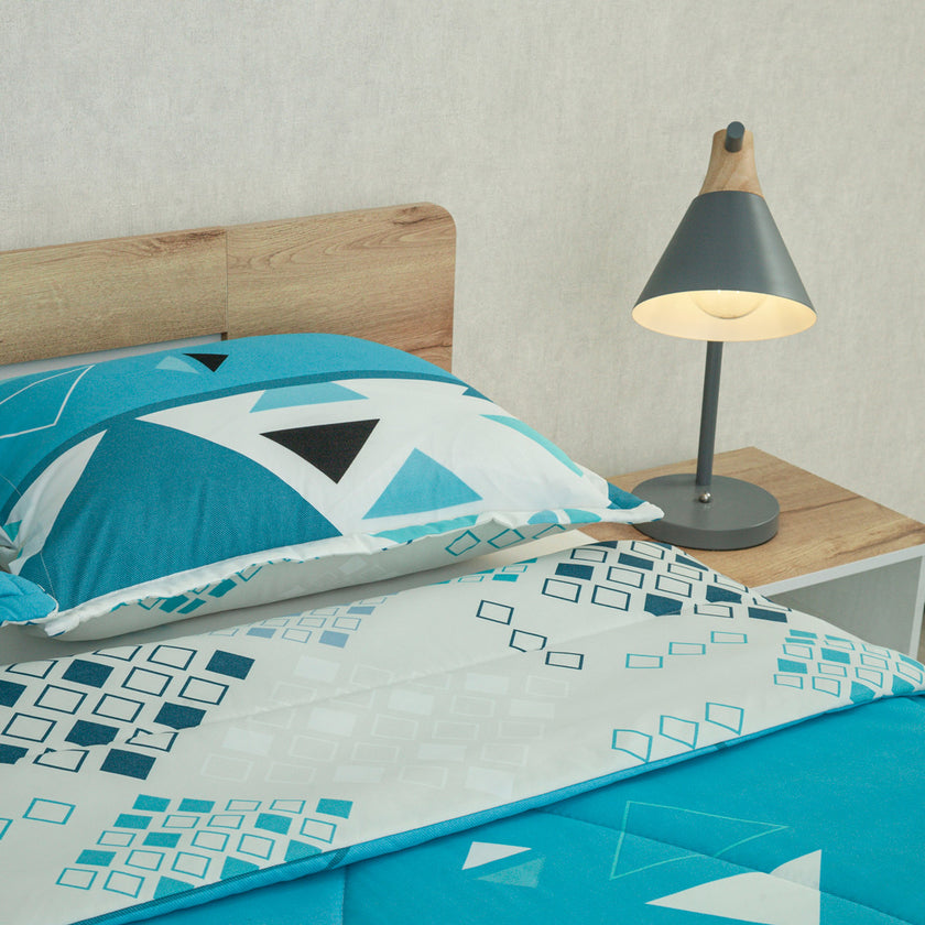 Cubrelecho Semiacolchado Doble Faz Primavera Geo Azul