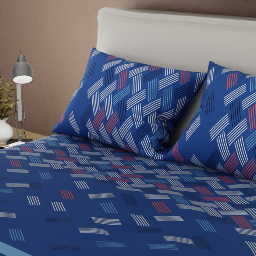Juego De Sábanas Microfibra Suavizada Primavera Geo Azul