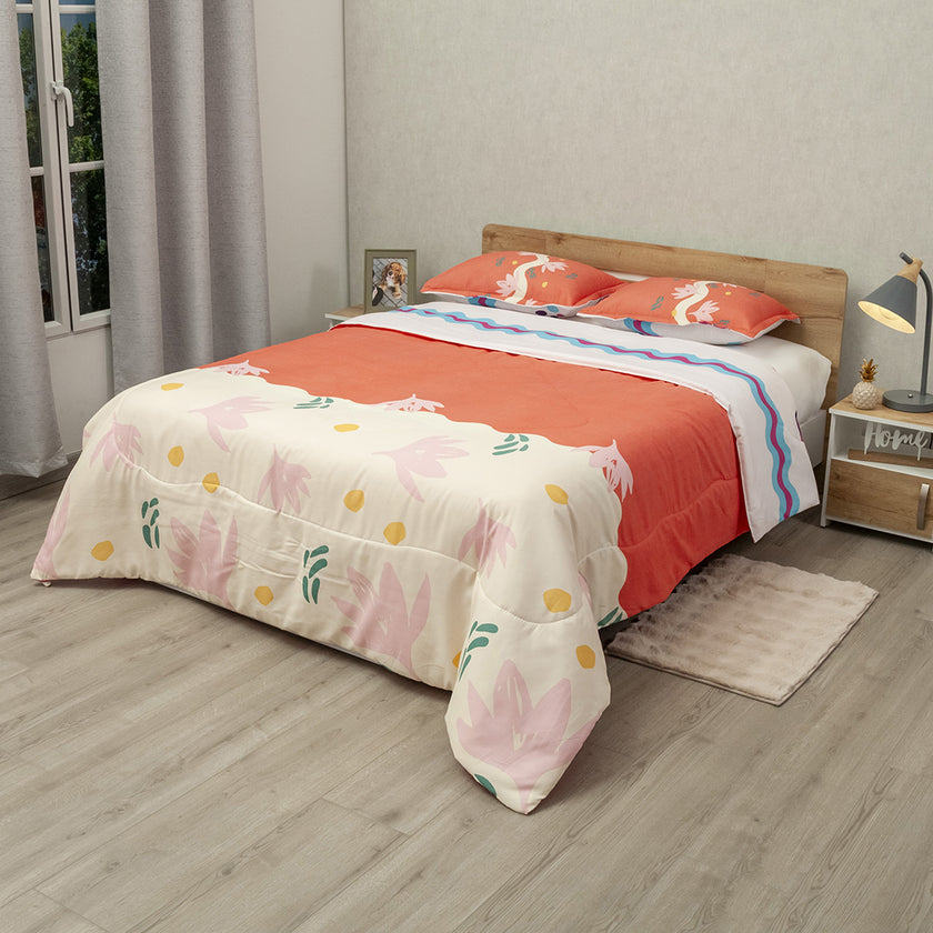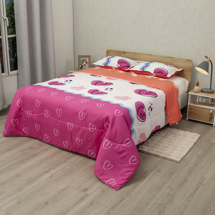 Cubrelecho Semiacolchado Doble Faz Fusión Salmon Y Fuscia