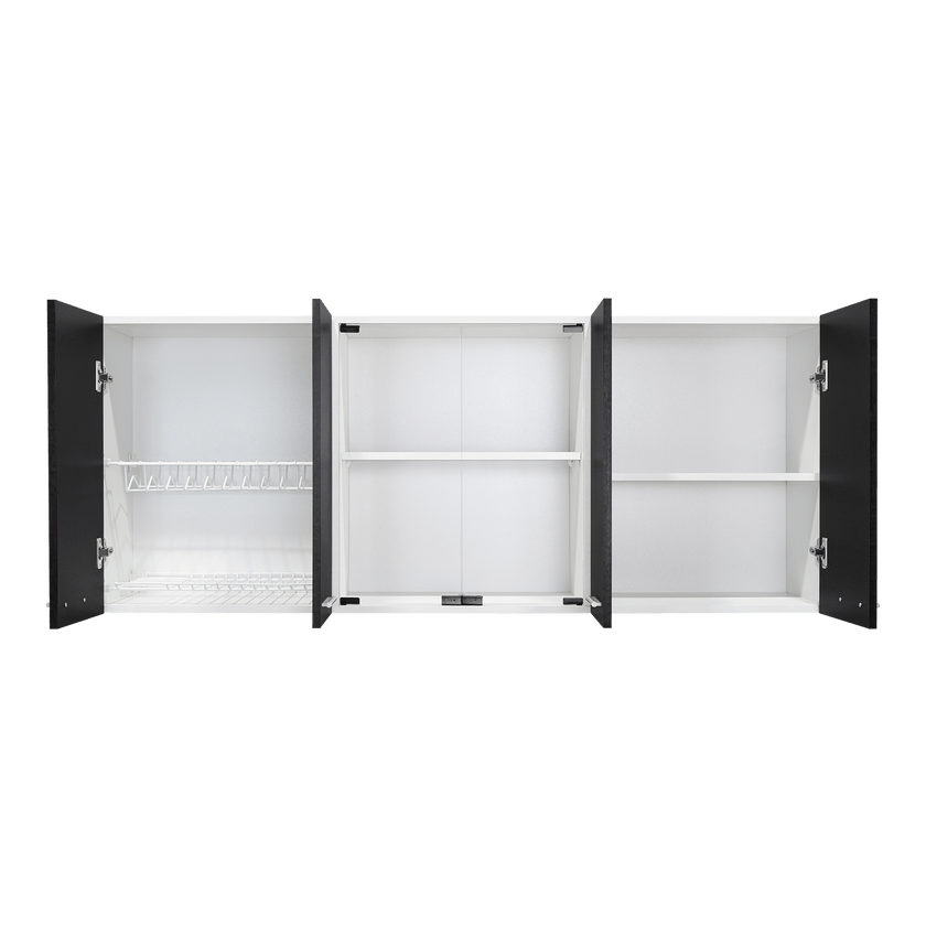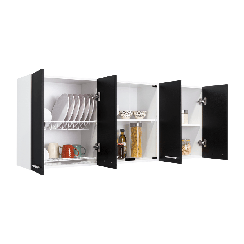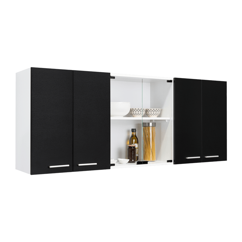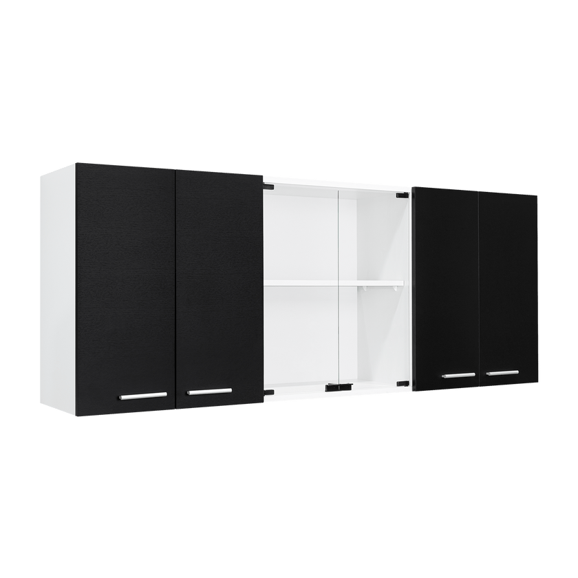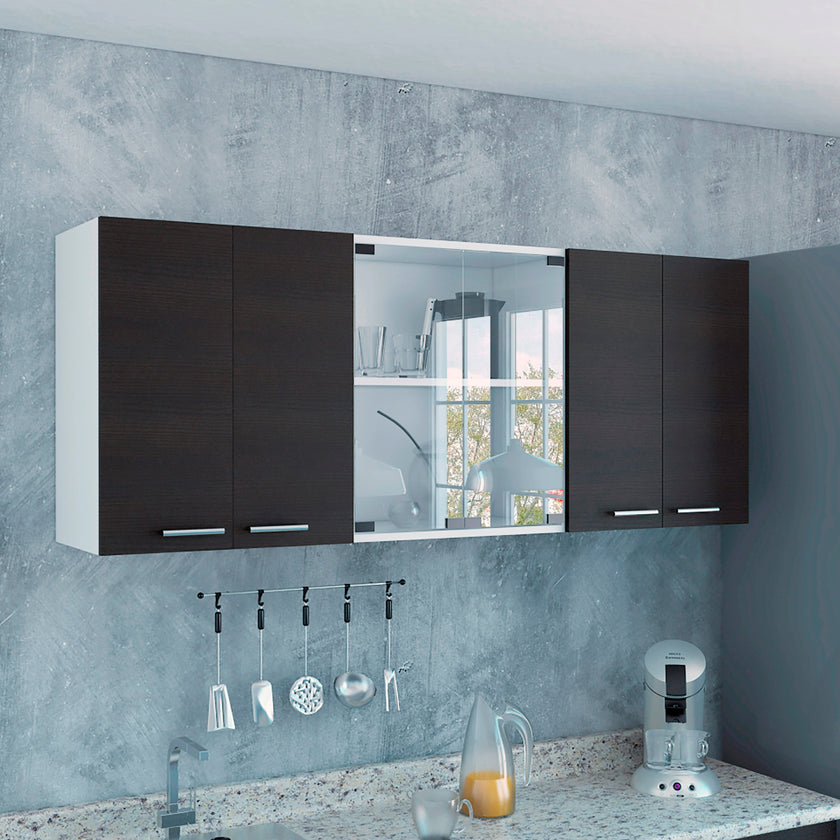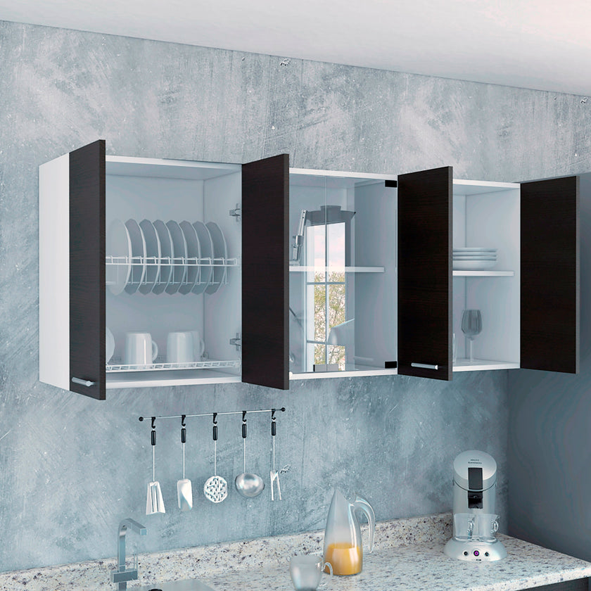 Gabinete Superior Cocina 150 Vidrio Rta Blanco + Wengue