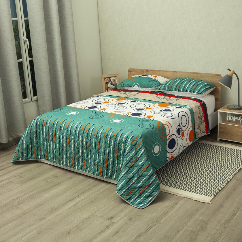 Cubrelecho Doble Faz Termosellado Oasis Moderno Verde