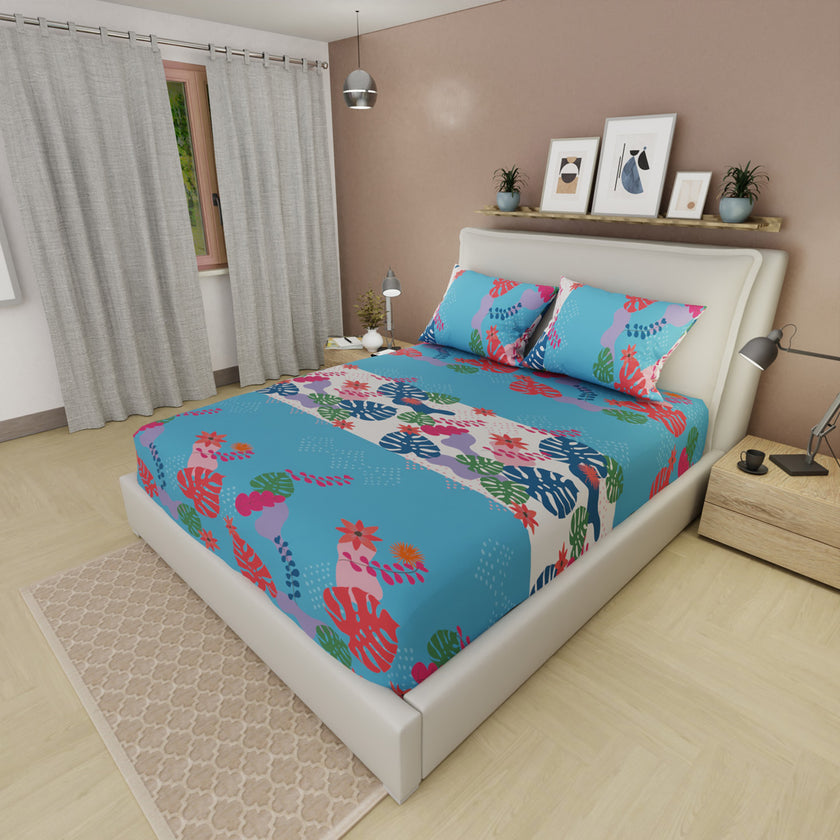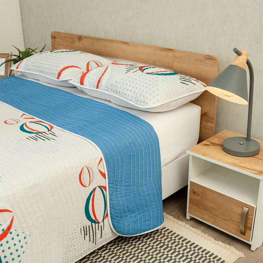 Cubrelecho Estampado Prensado Doble Faz Giro Magnético Azul