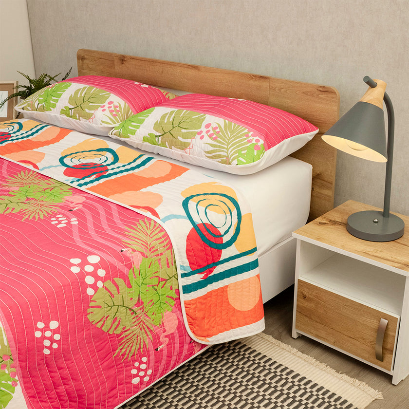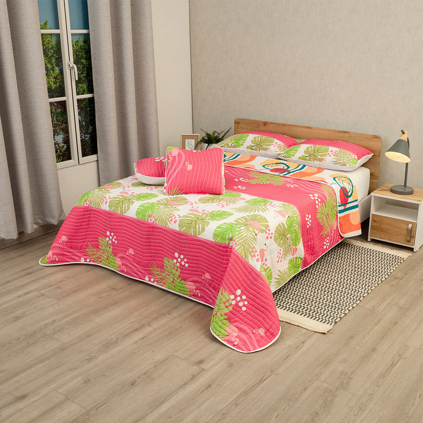 Cubrelecho Estampado Prensado Doble Faz Carnaval En Salmon