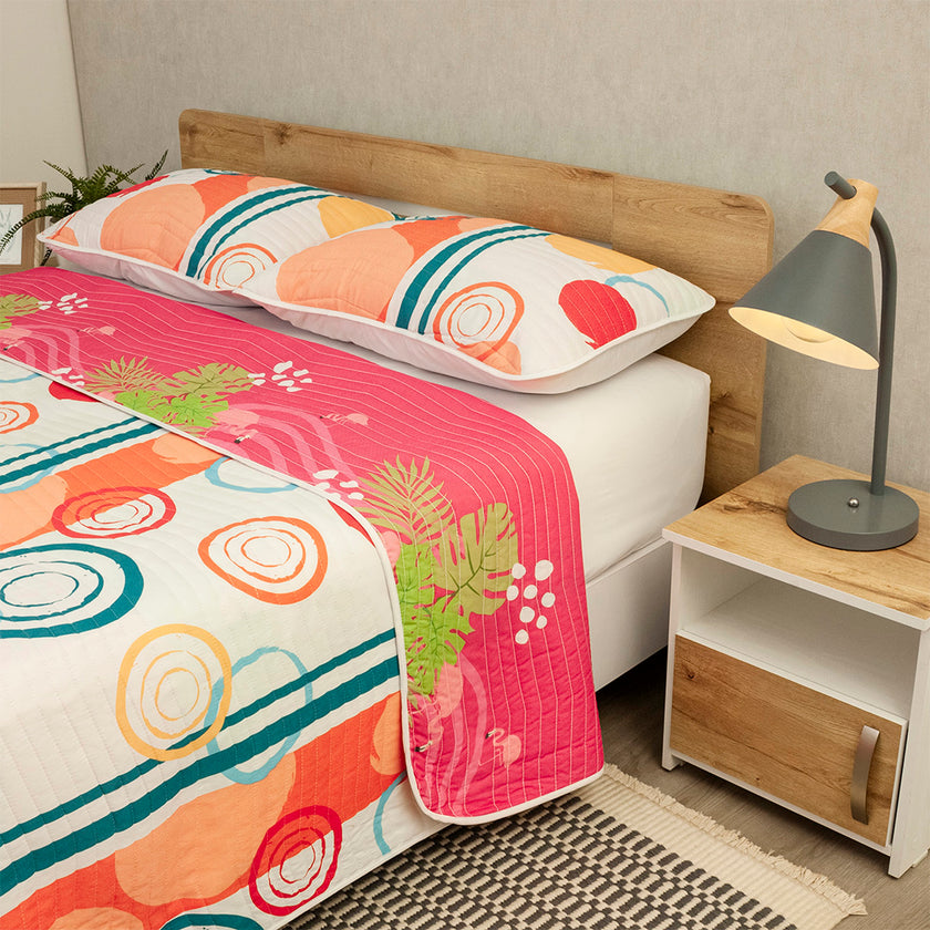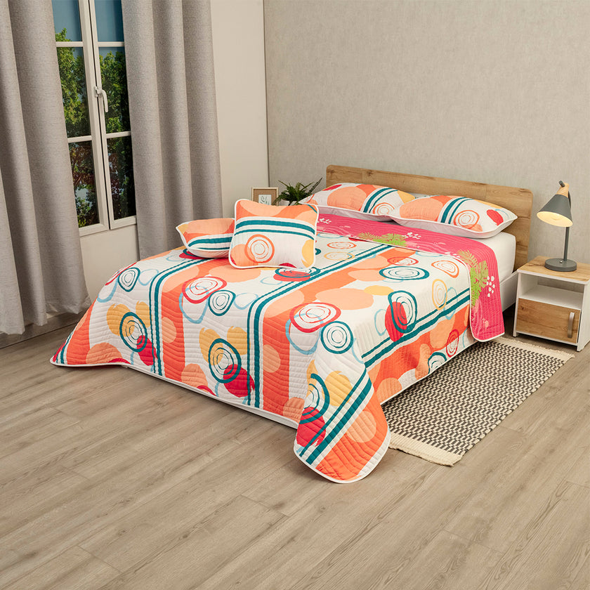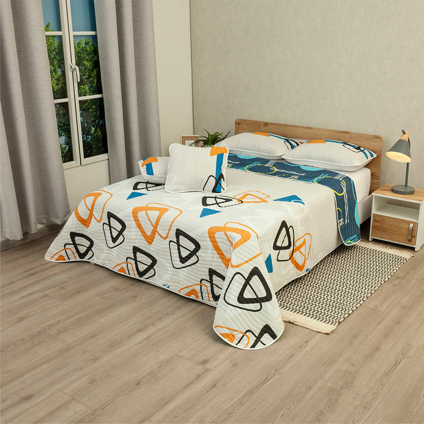 Cubrelecho Estampado Prensado Doble Faz Vórtice Cromático