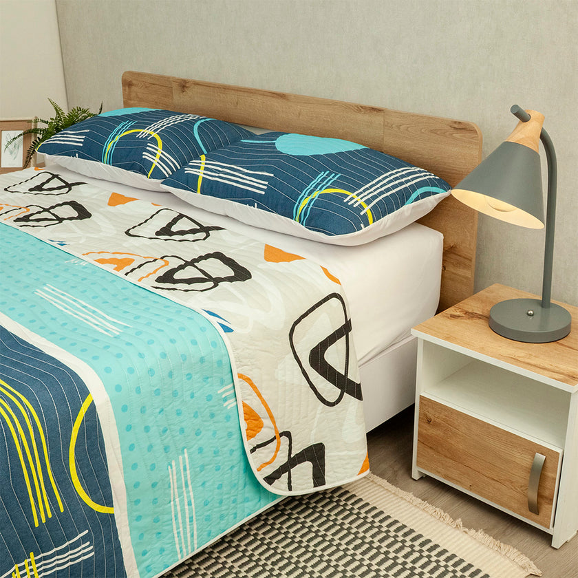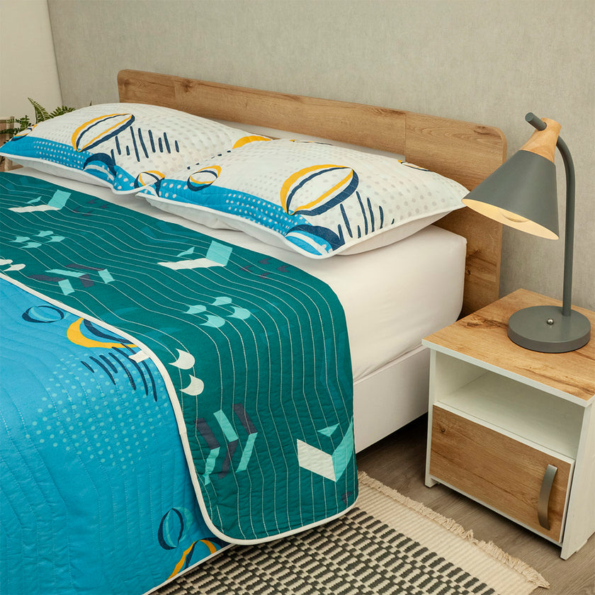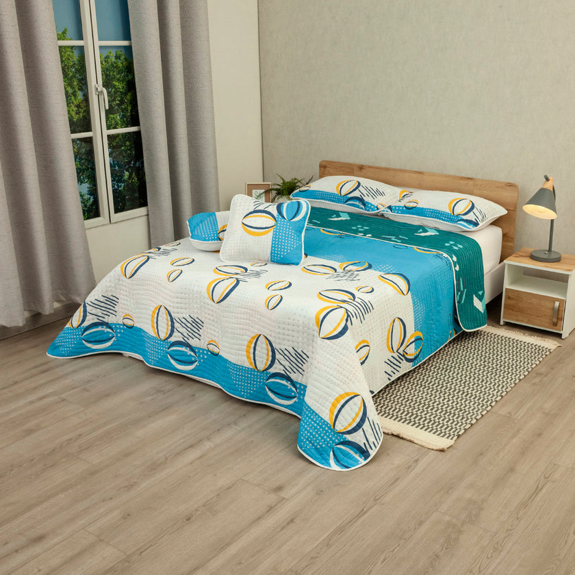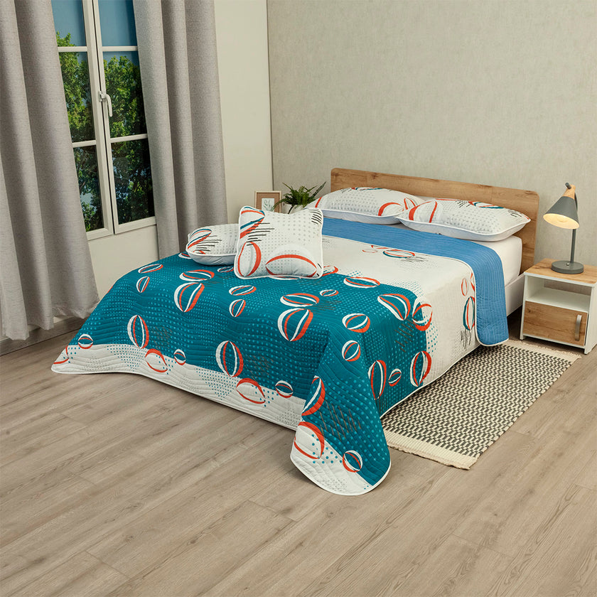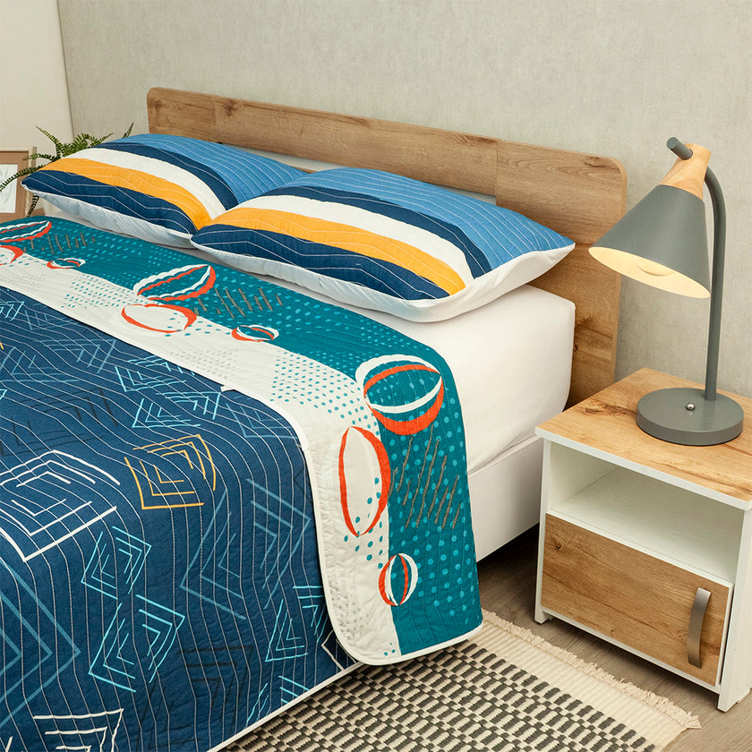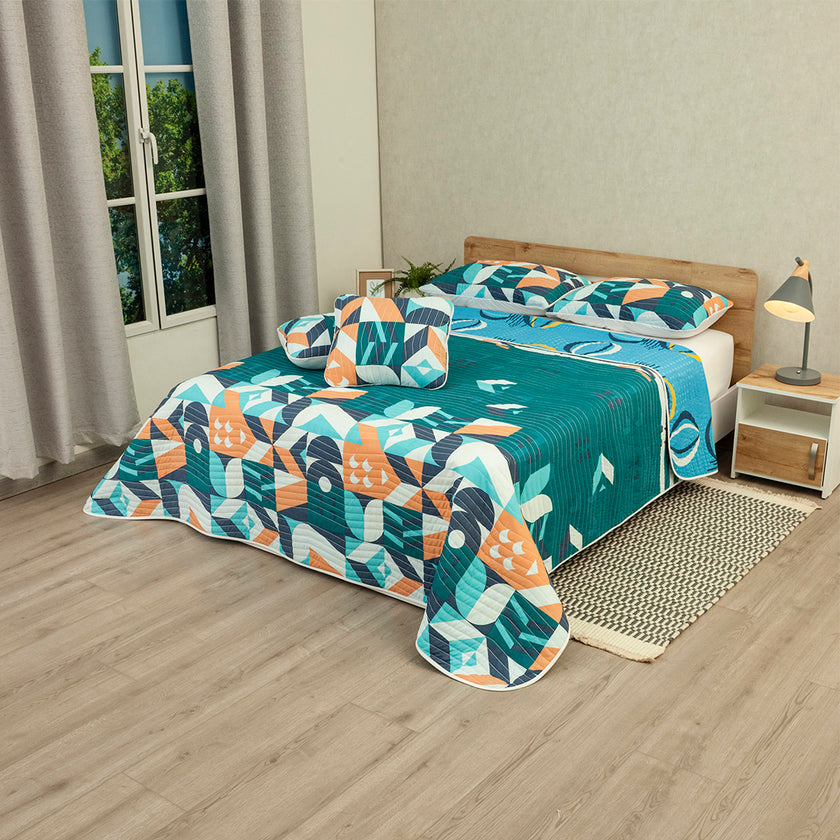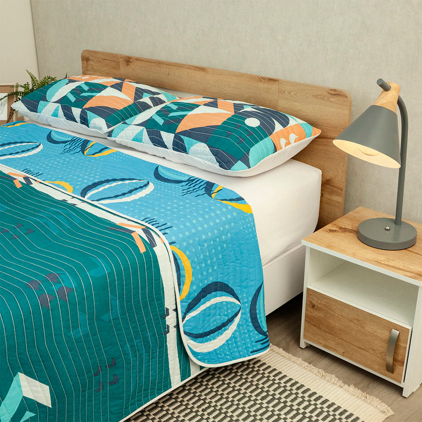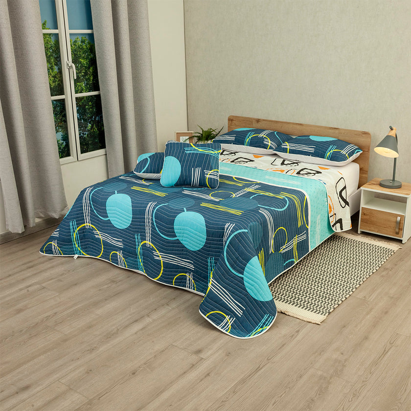 Cubrelecho Estampado Prensado Doble Faz Océano Tribal