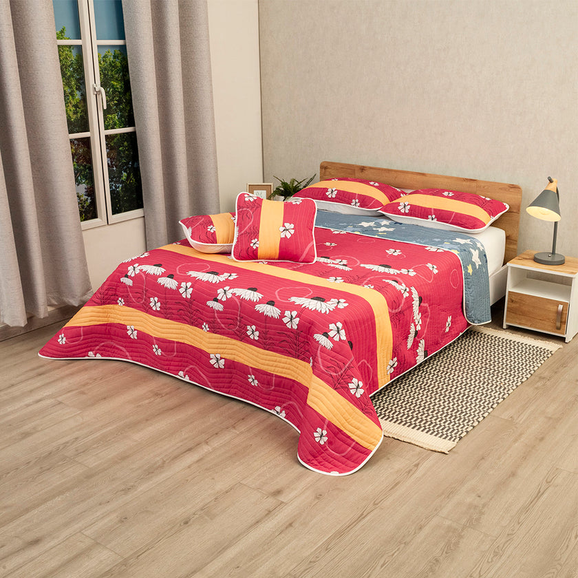 Cubrelecho Estampado Prensado Doble Faz Ramillete De Colores