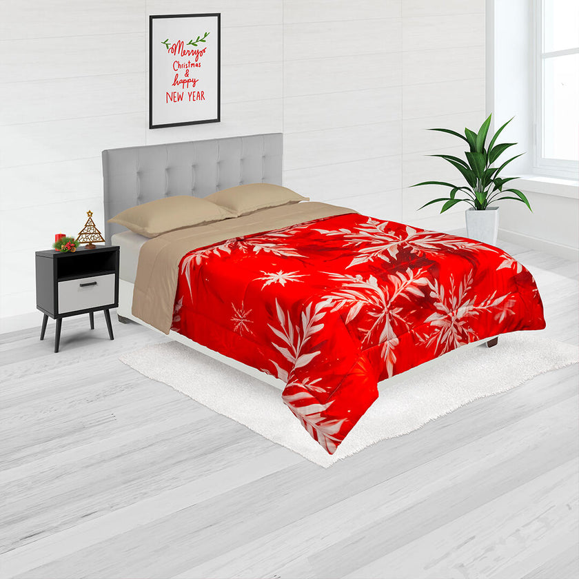 Cubrelecho Navideño Doble Faz Hojas De Navidad Solo Fondo Camel