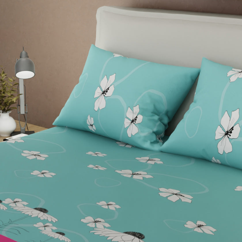 Juego De Sábanas Microfibra Suavizada Luz De Margarita Aguamarina