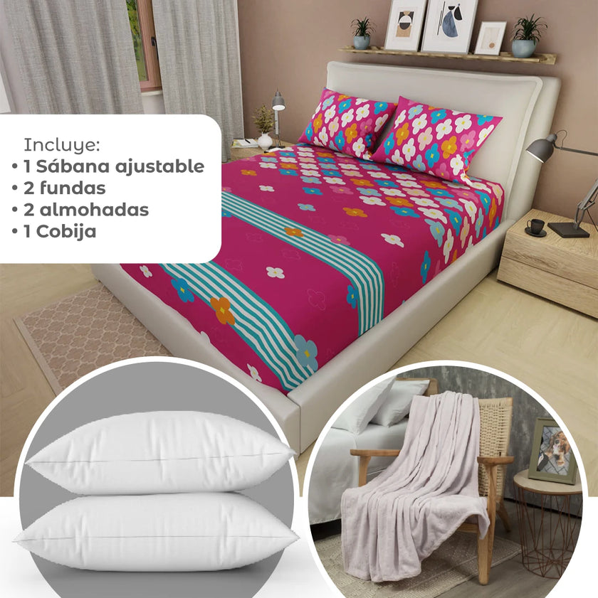Juego De Sábanas Microfibra Suavizada Carnaval En Rosa