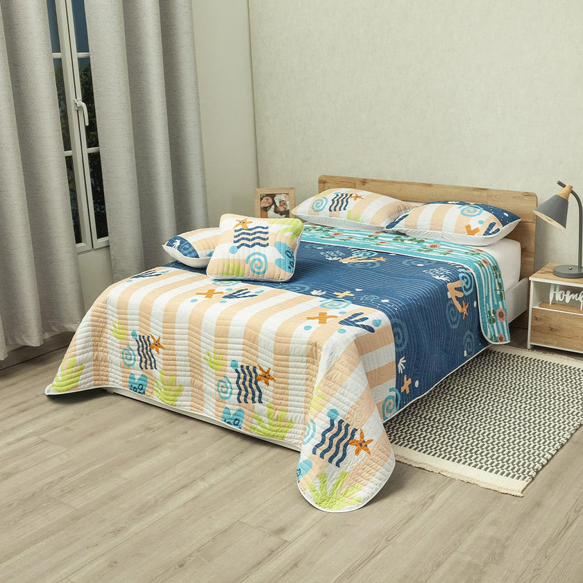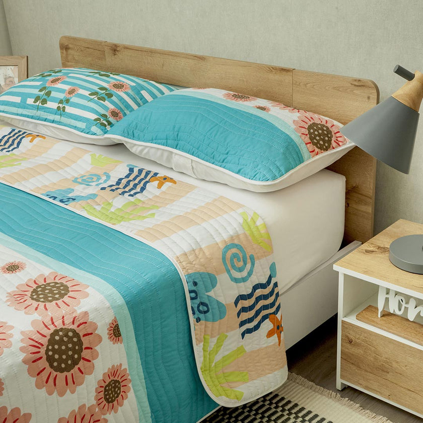 Cubrelecho Estampado Prensado Doble Faz Verano Eterno