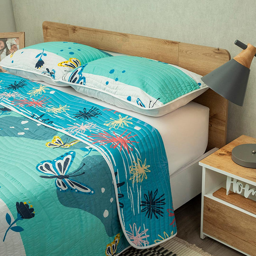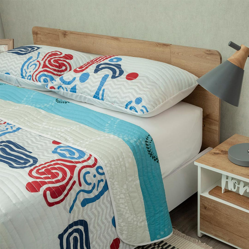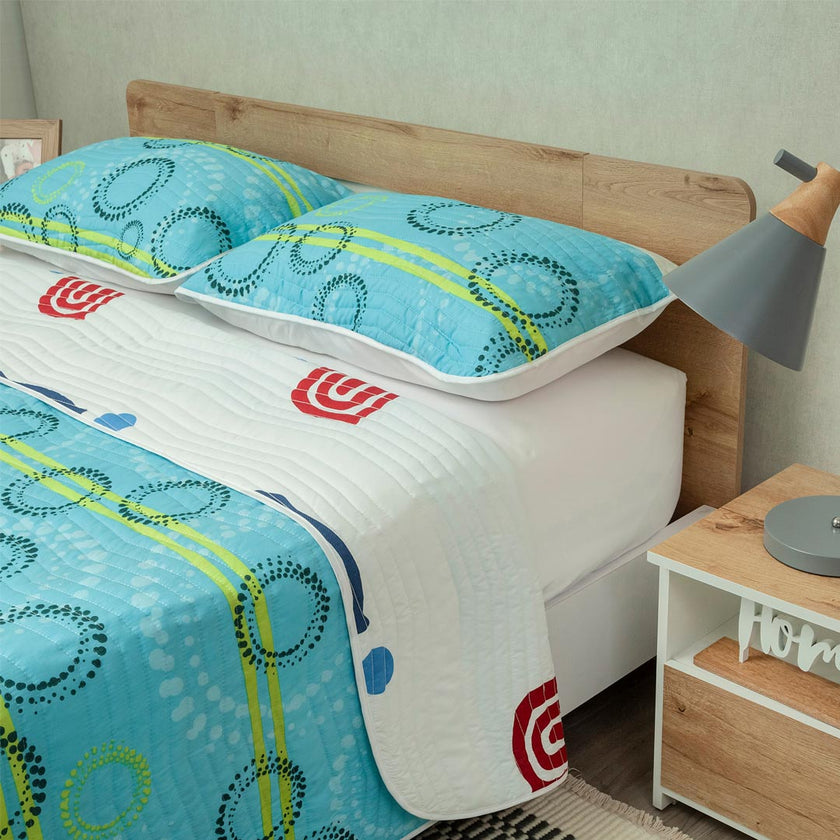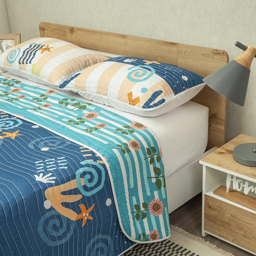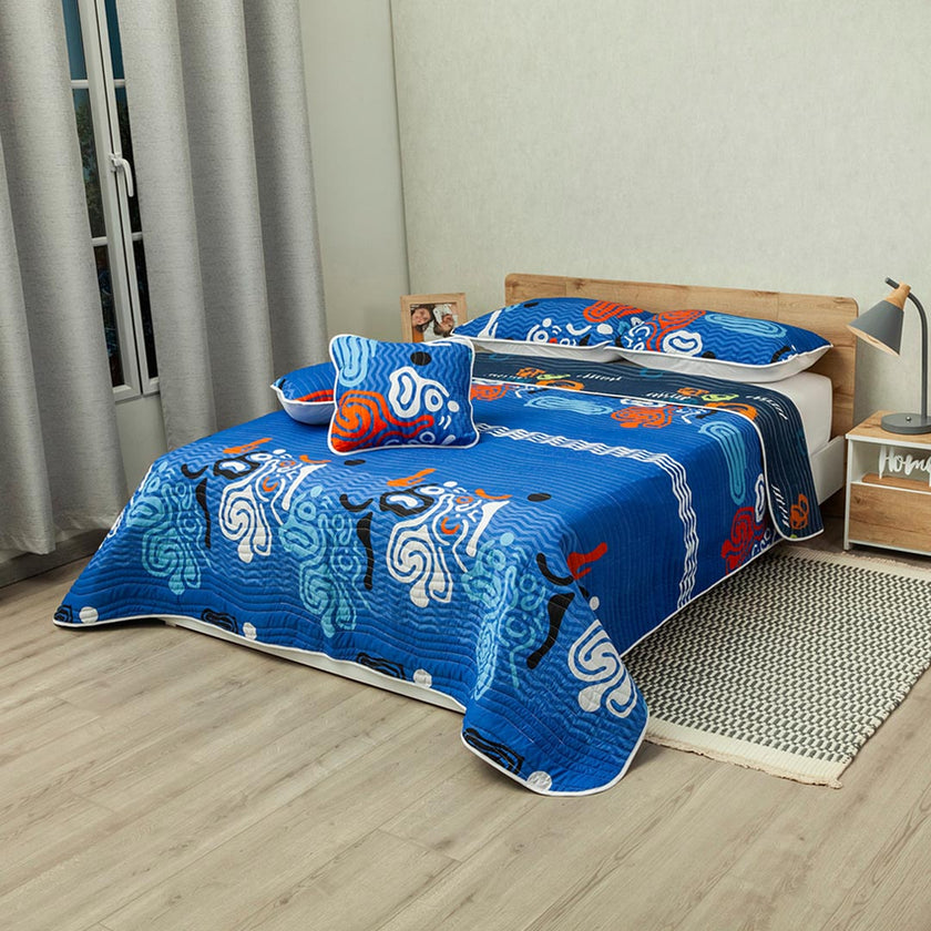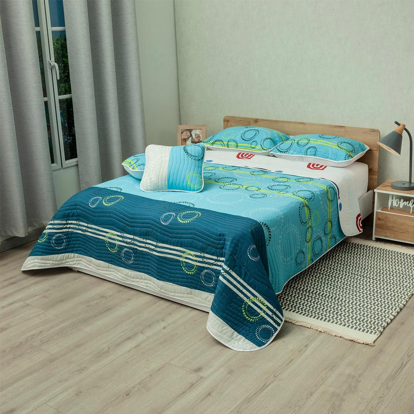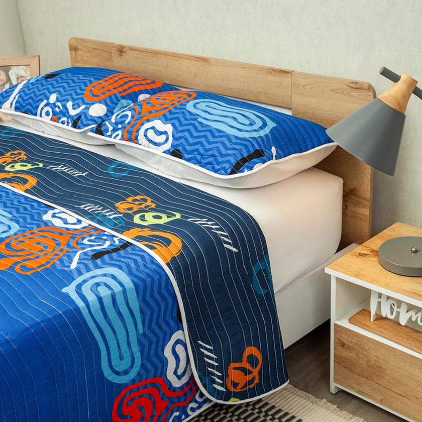 Cubrelecho Estampado Prensado Doble Faz Líneas Encantadas Azul