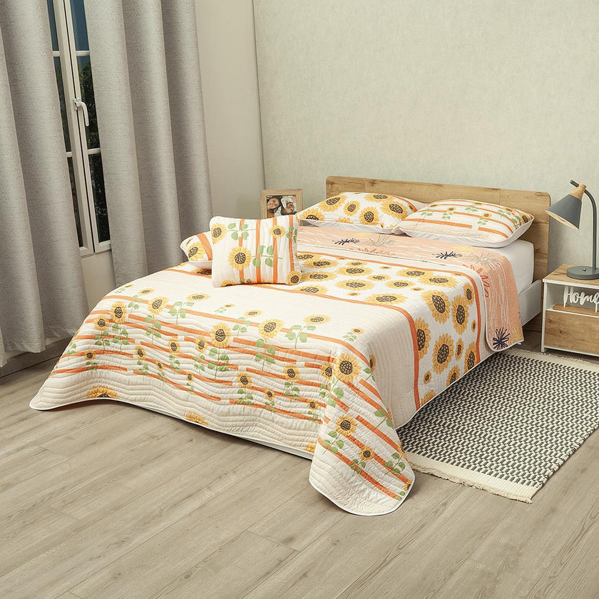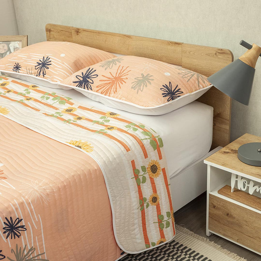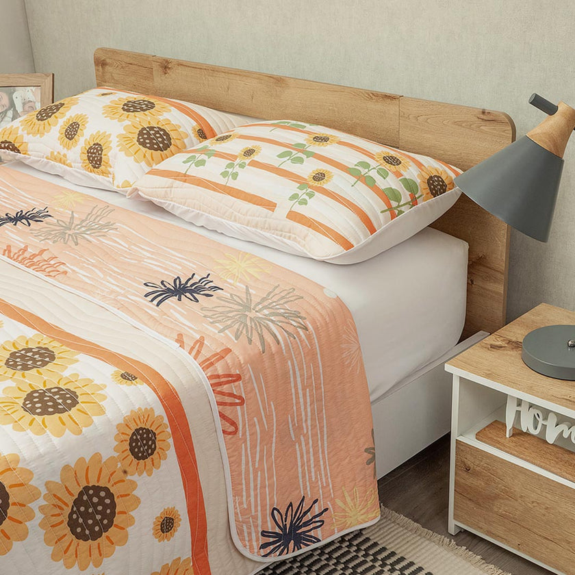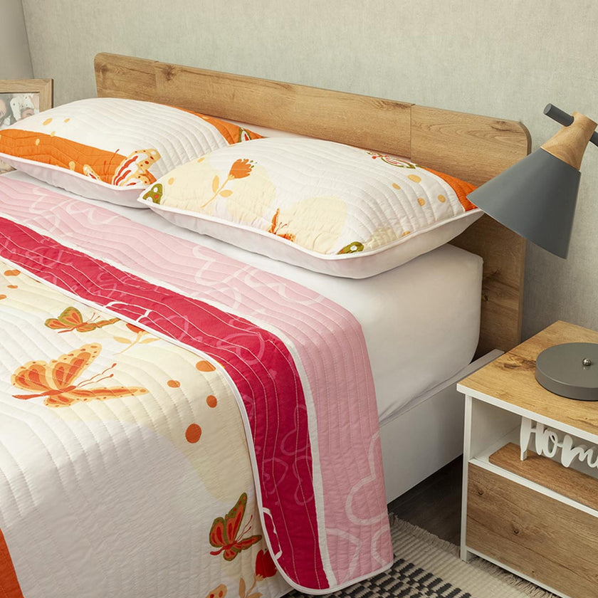 Cubrelecho Estampado Prensado Doble Faz Ala De Primavera Naranja