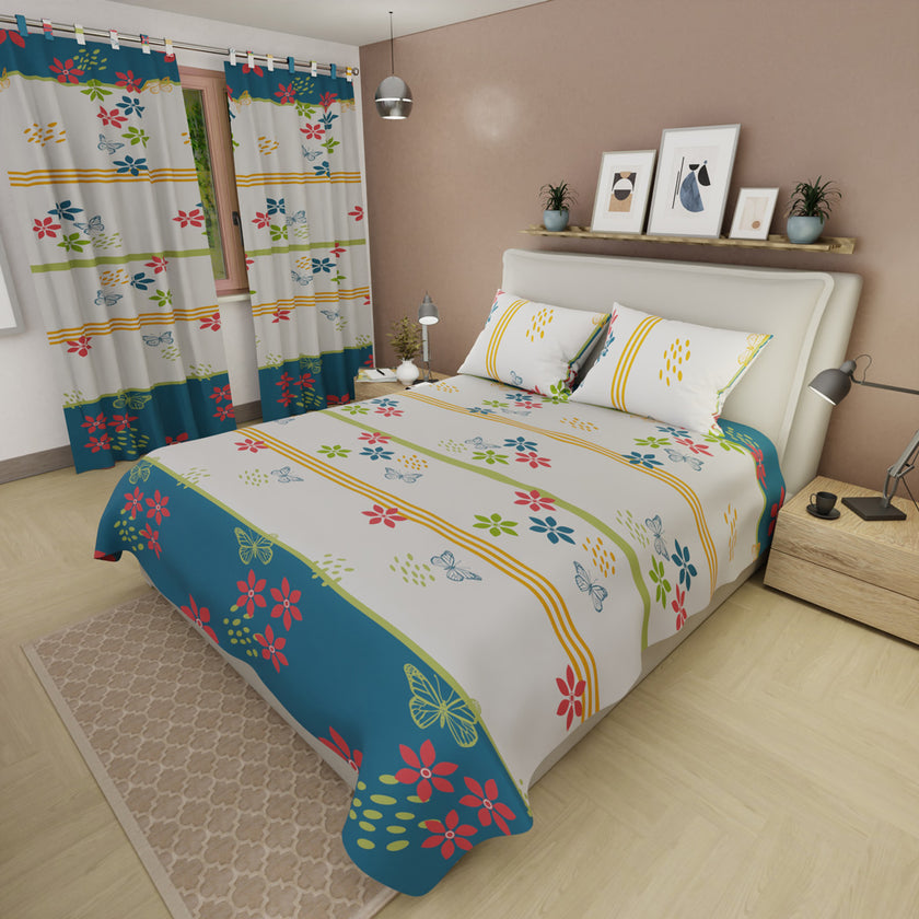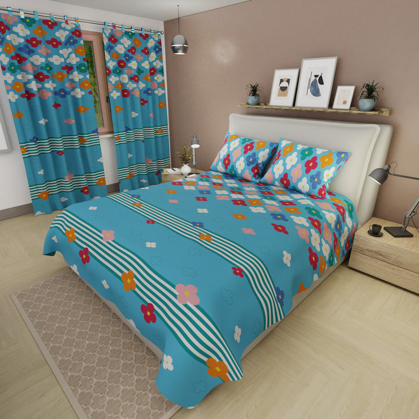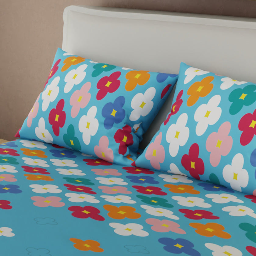 Juego De Sábanas Microfibra Suavizada Fiesta Floral Azul