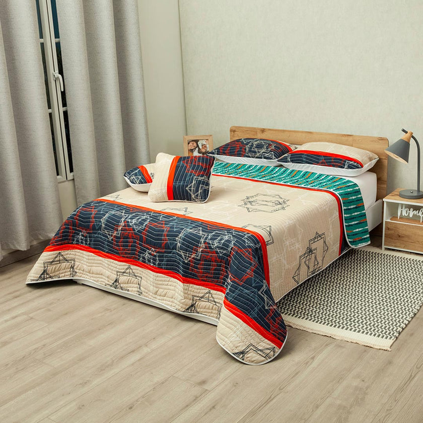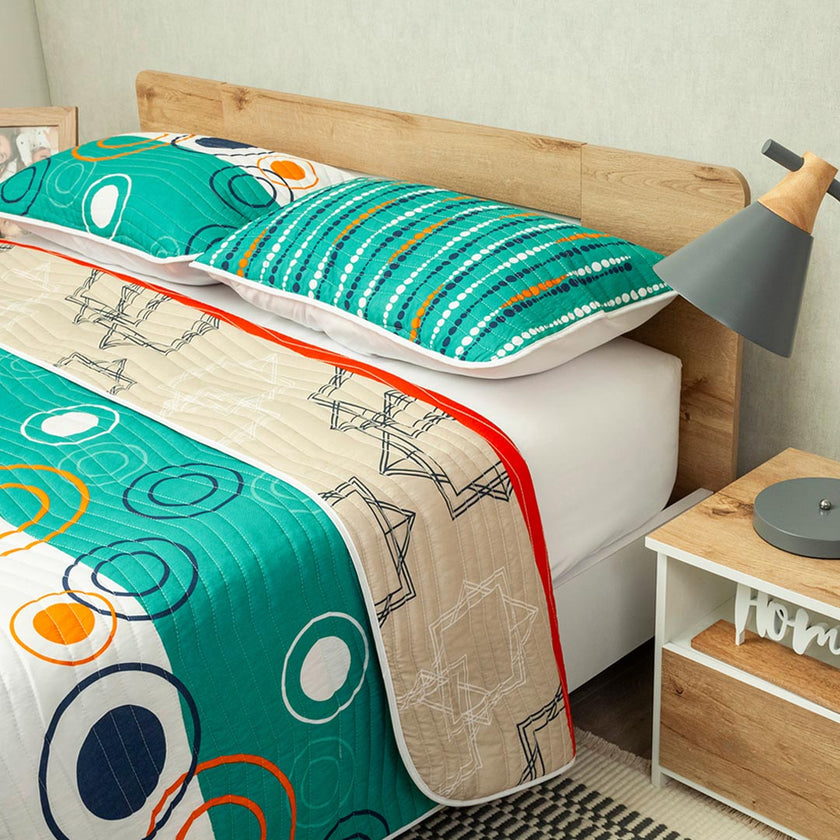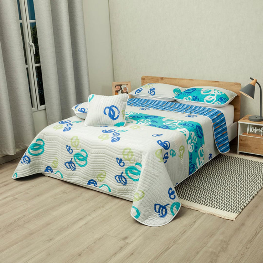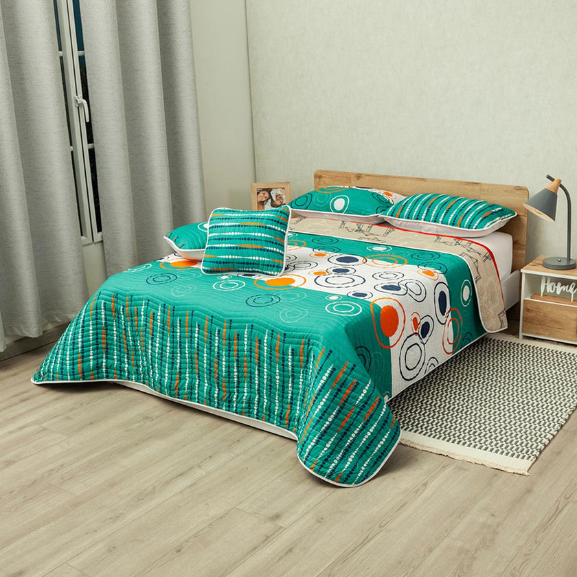Cubrelecho Estampado Prensado Doble Faz Oasis Moderno Verde