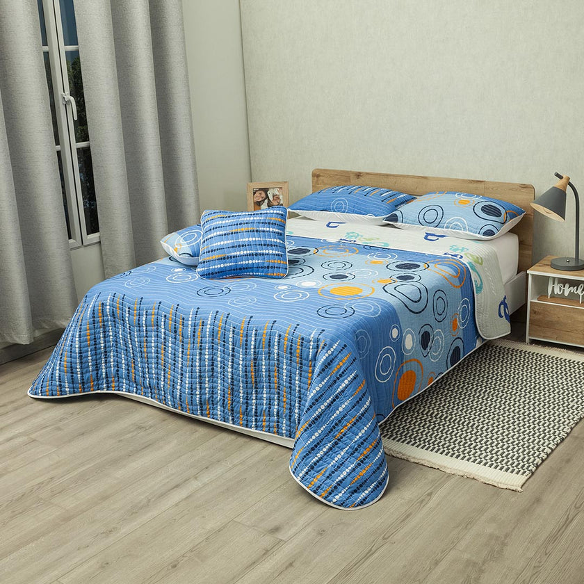 Cubrelecho Estampado Prensado Doble Faz Flujo De Color Gris