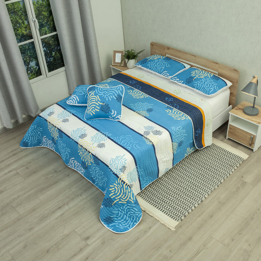 Cubrelecho Estampado Prensado Doble Faz Mar Estrellado