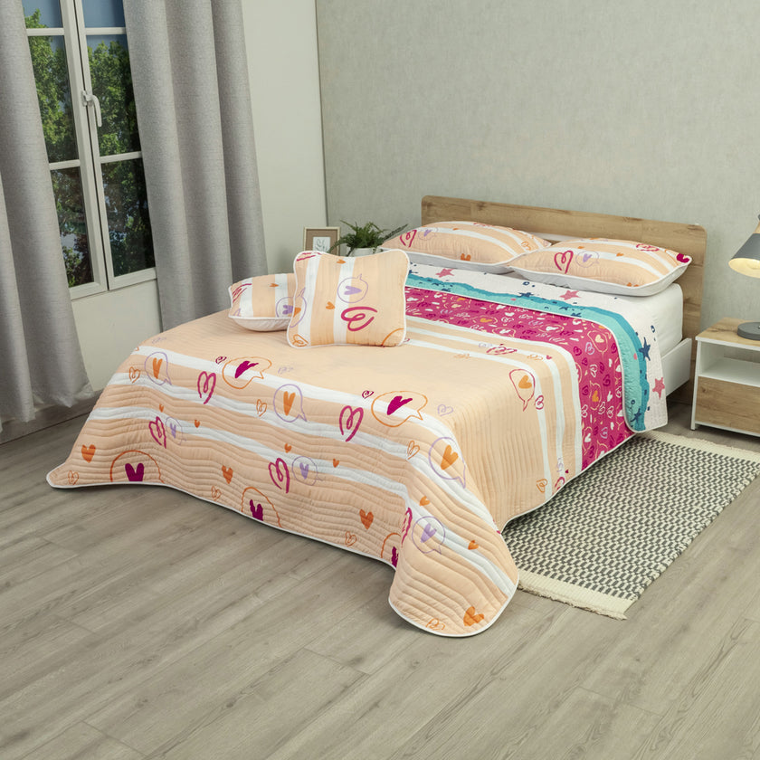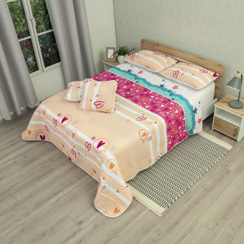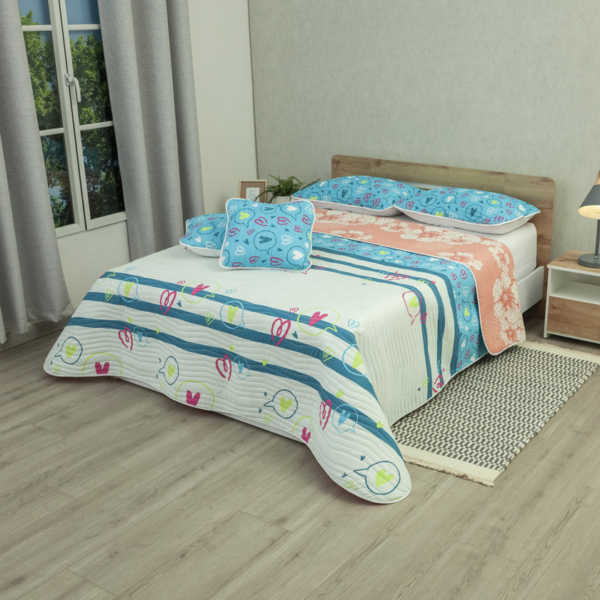 Cubrelecho Estampado Prensado Doble Faz Dúo Vibrante