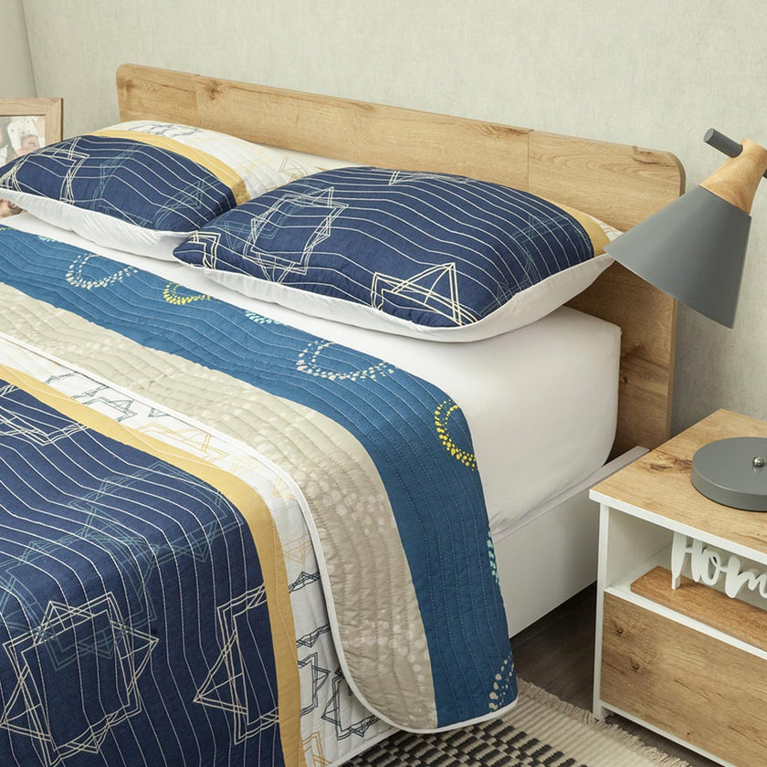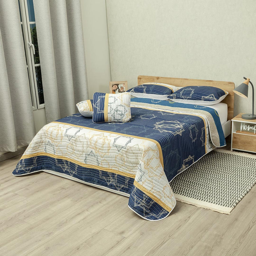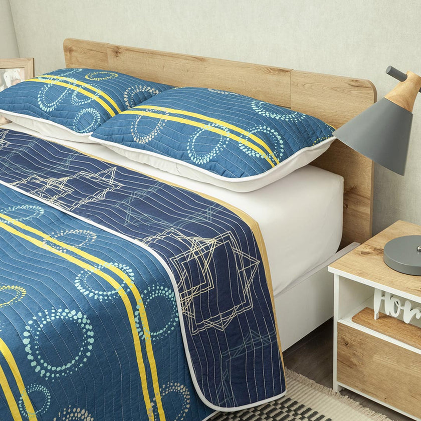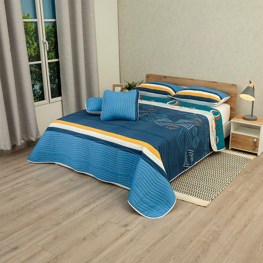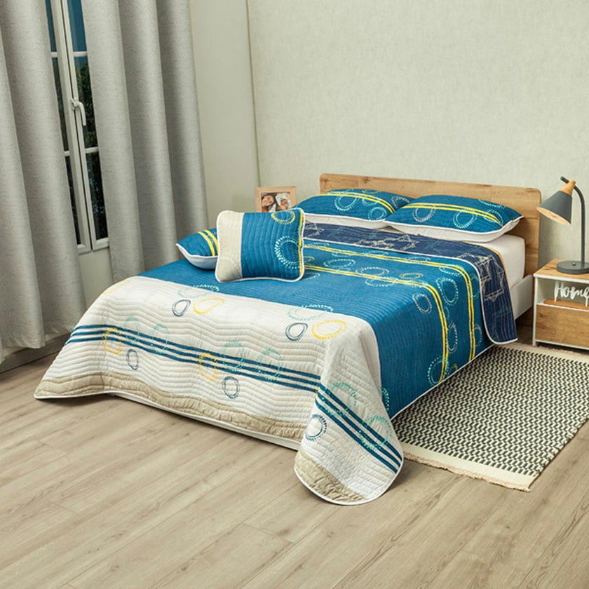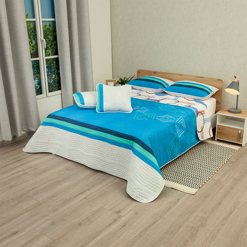 Cubrelecho Estampado Prensado Doble Faz Líneas Encantadas Azul