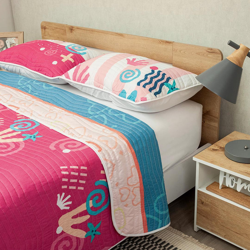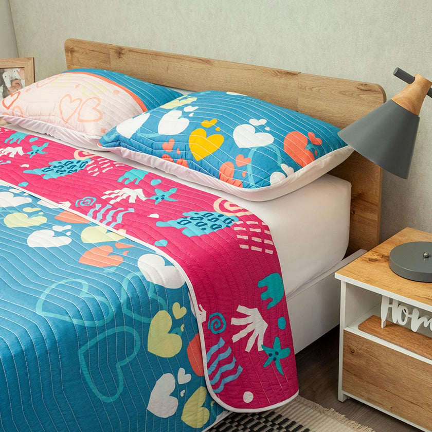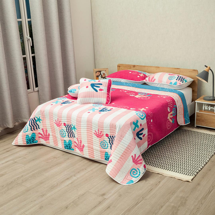 Cubrelecho Estampado Prensado Doble Faz Explosión Marina