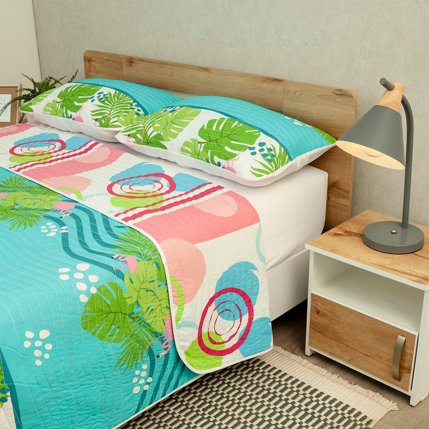 Cubrelecho Estampado Prensado Doble Faz Jardín Caribeño