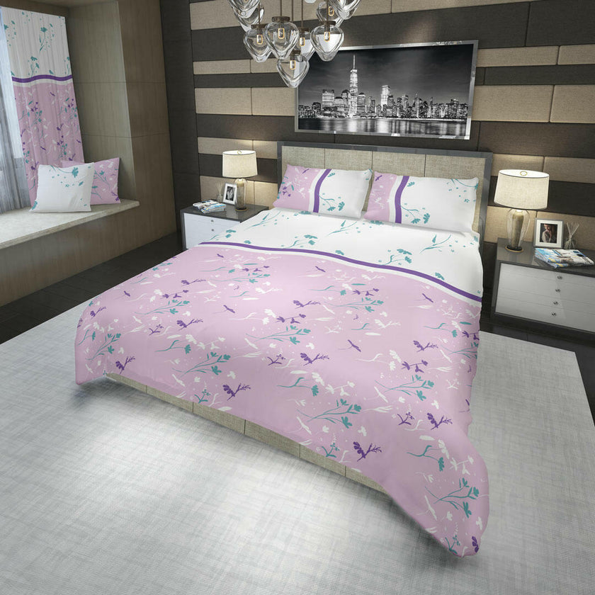 Juego De Sábanas Con Cortinas Flores En Fondo Aguamarina Ultra Suave