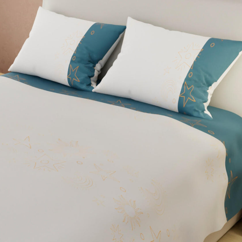 Juego De Sábanas 180 Hilos Blanco Azul Estrellas Sol Confotable