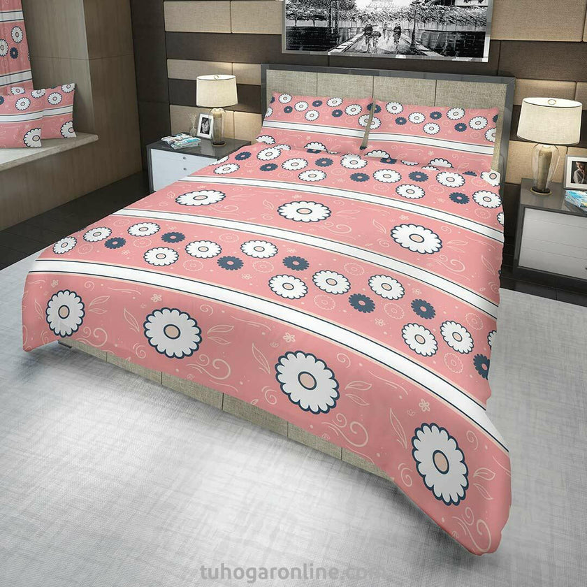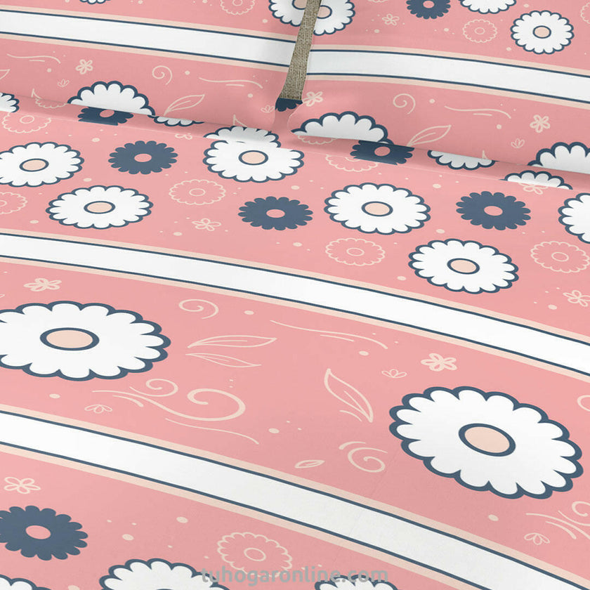 Juego De Sabanas 180 Hilos Salmón Azul Flores Confortable
