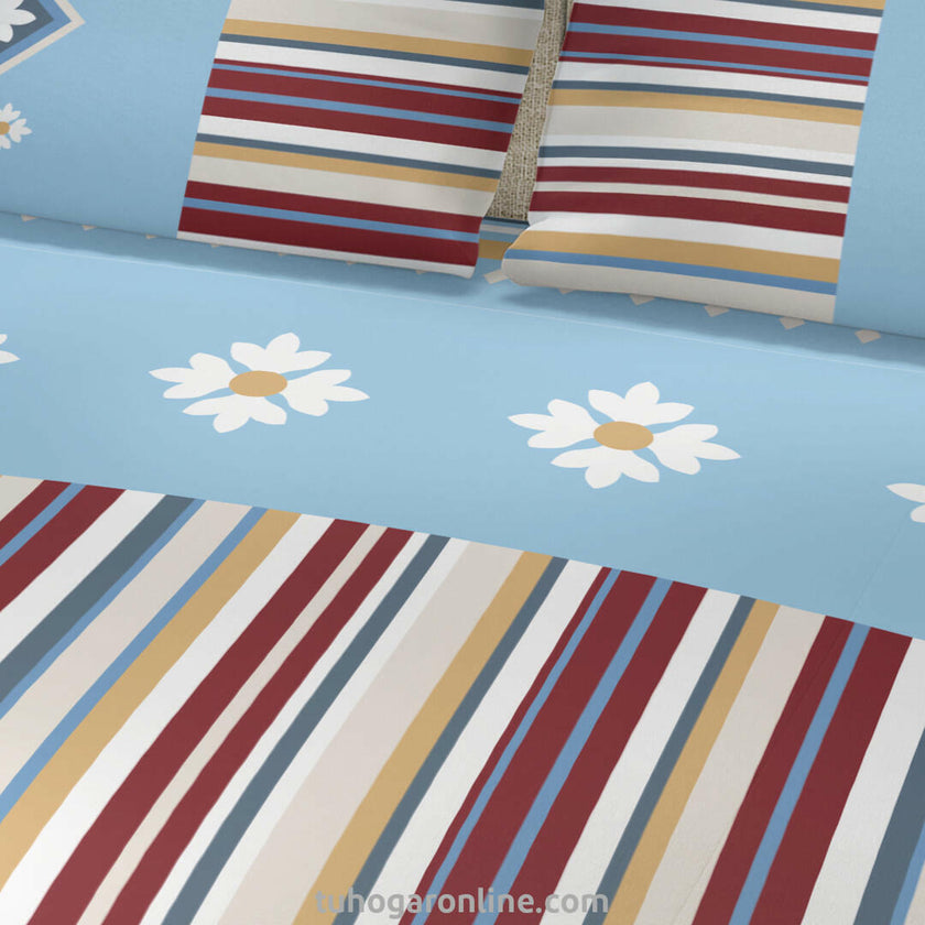 Juego De Sábanas Microfibra Suavizada Vinotinto Azul Y Blanco Rombos Confortable