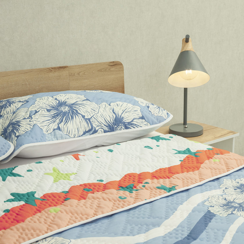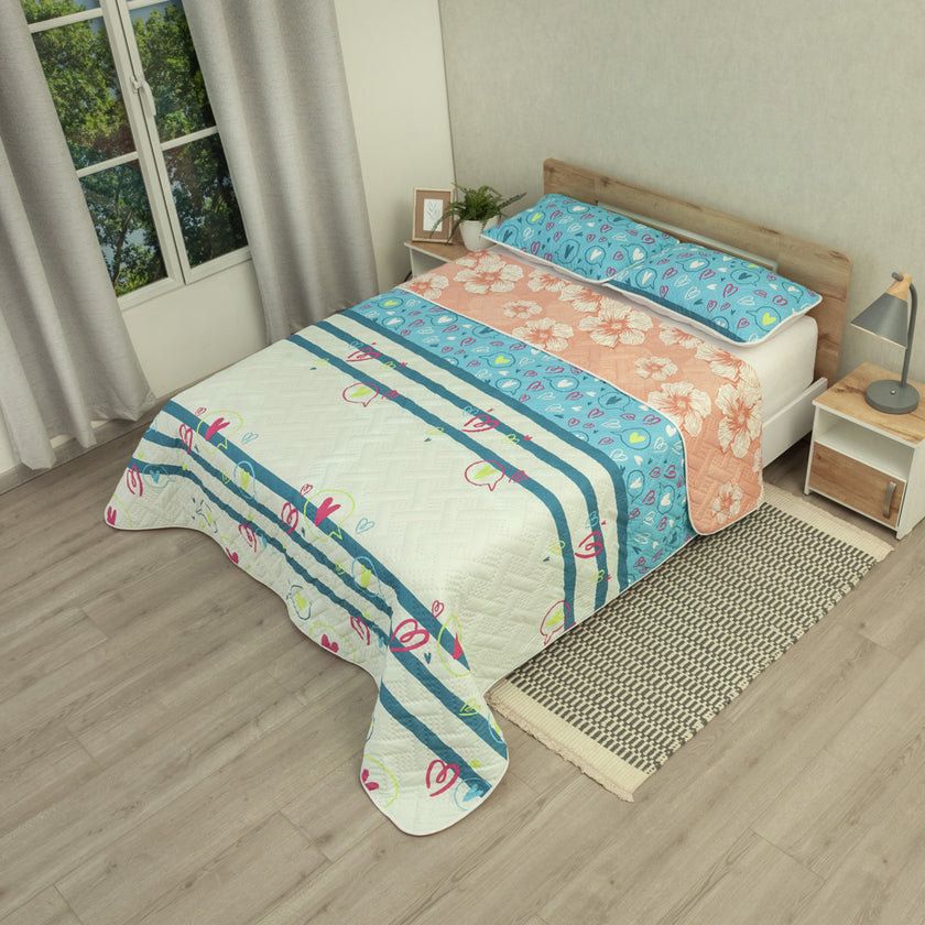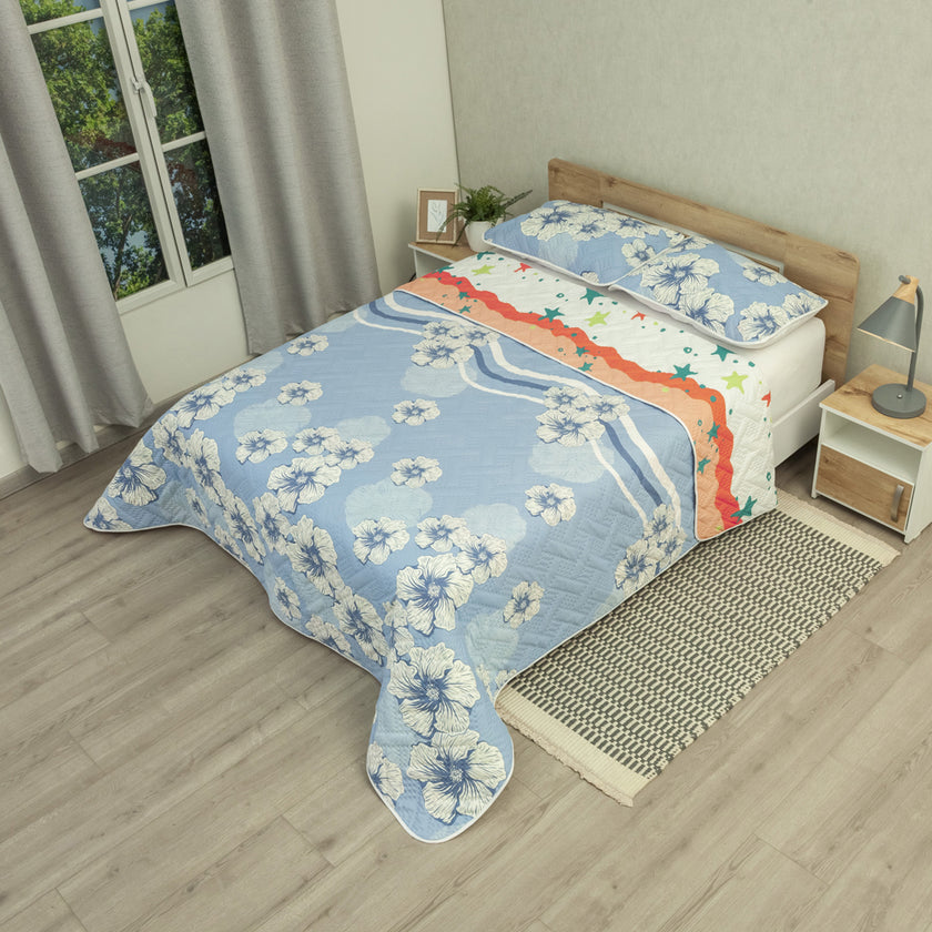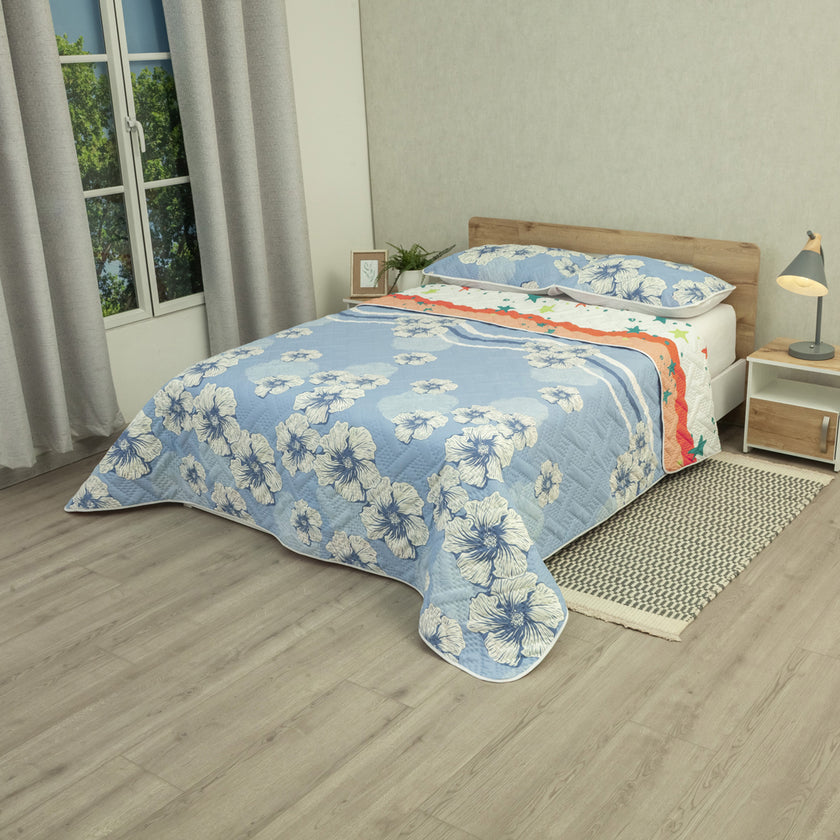 Cubrelecho Doble Faz Termosellado Ecos De Cielo Y Jardín