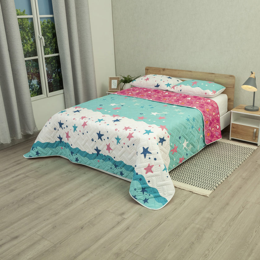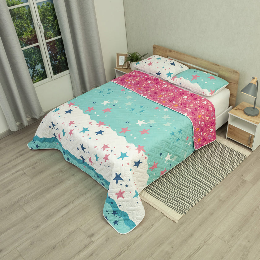 Cubrelecho Doble Faz Termosellado Mar Estrellado