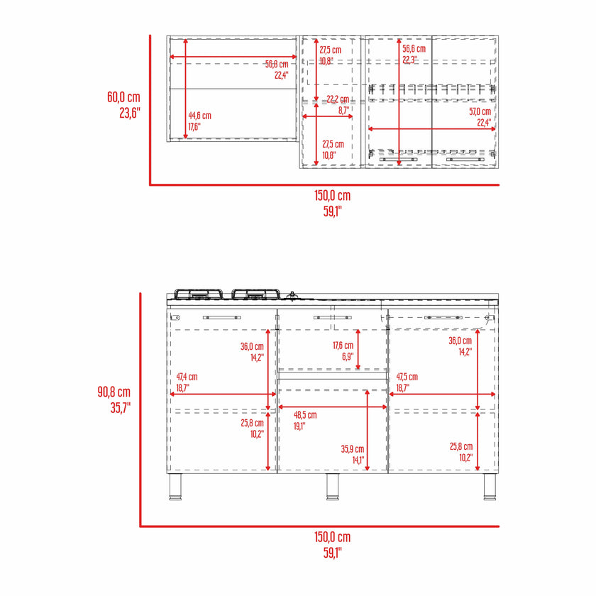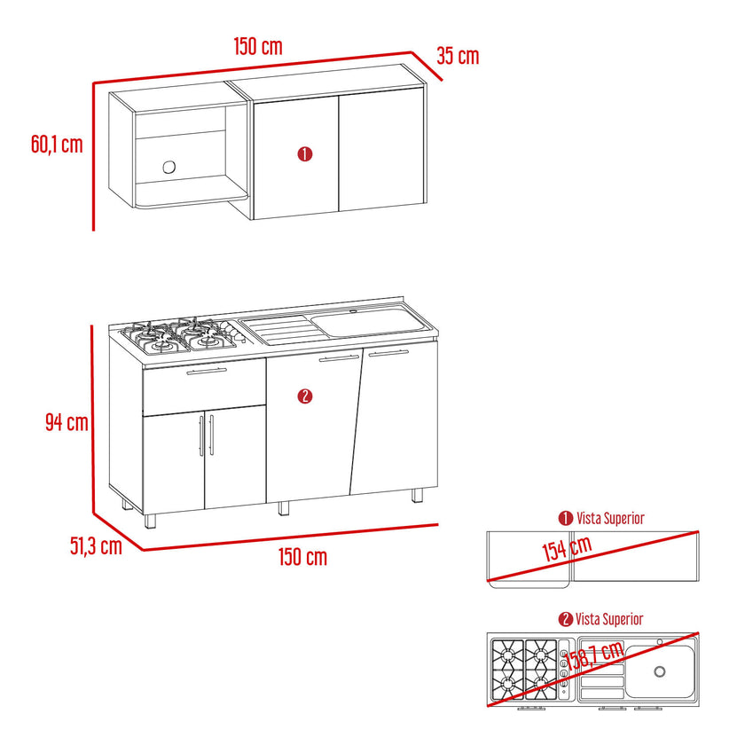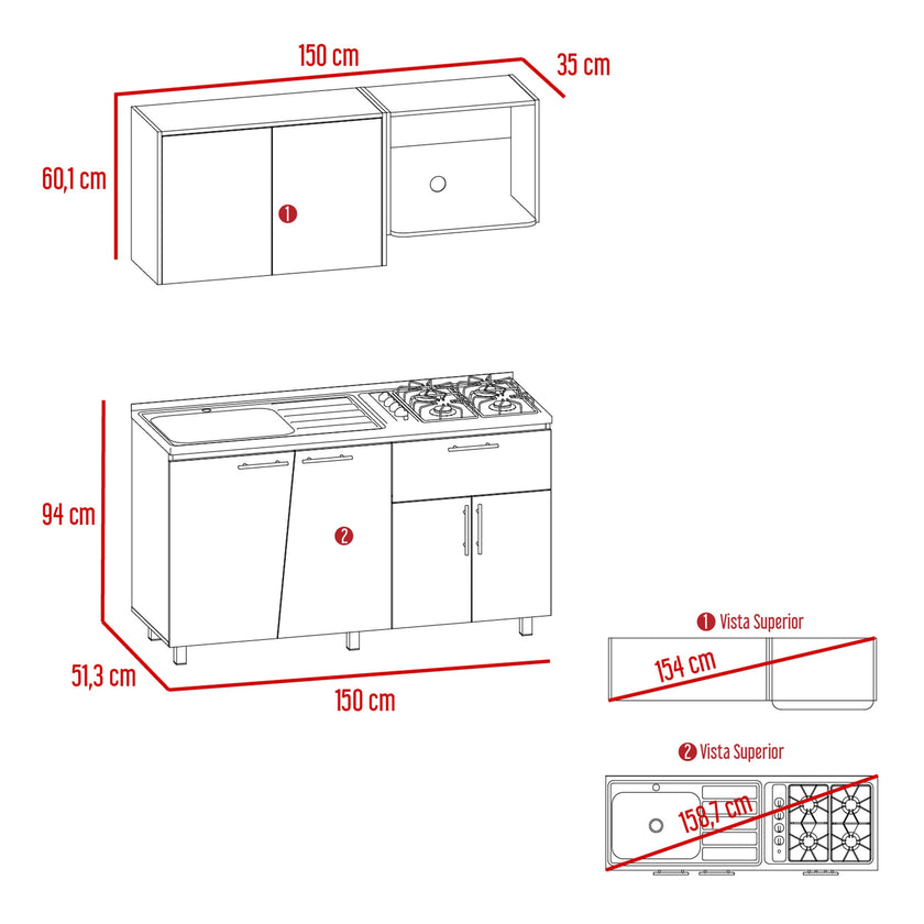 Cocina 1.50 Emilia Der Rta Wengue Fresno Wengue