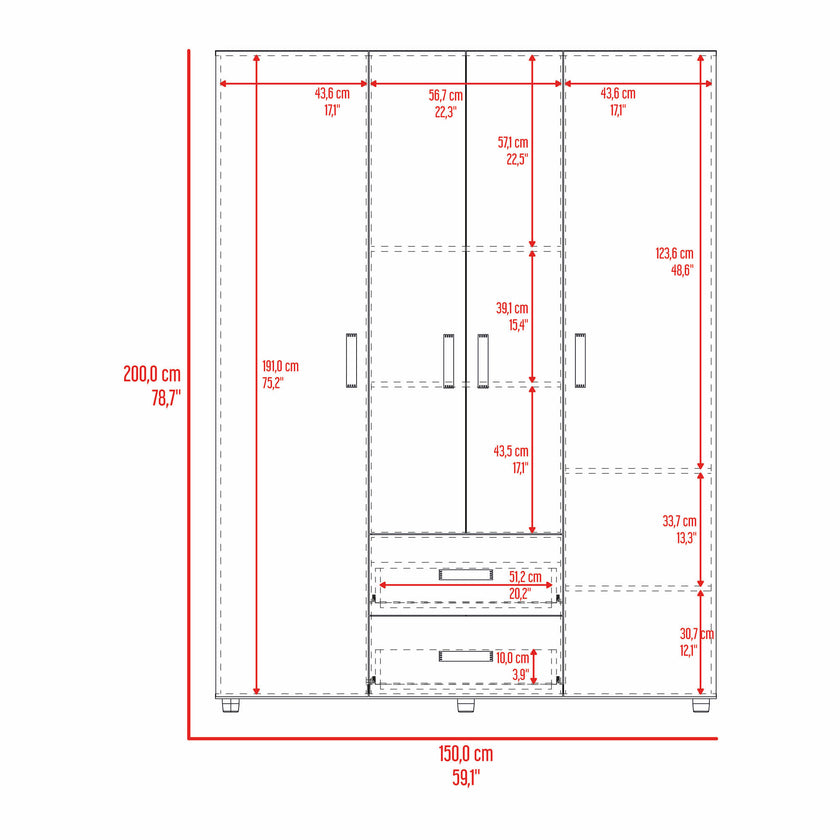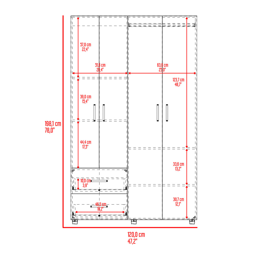 Closet Barilo 2 Cajones 200X120X45 Rta Niebla Blanco