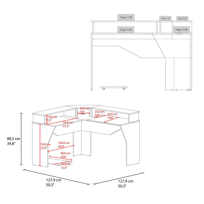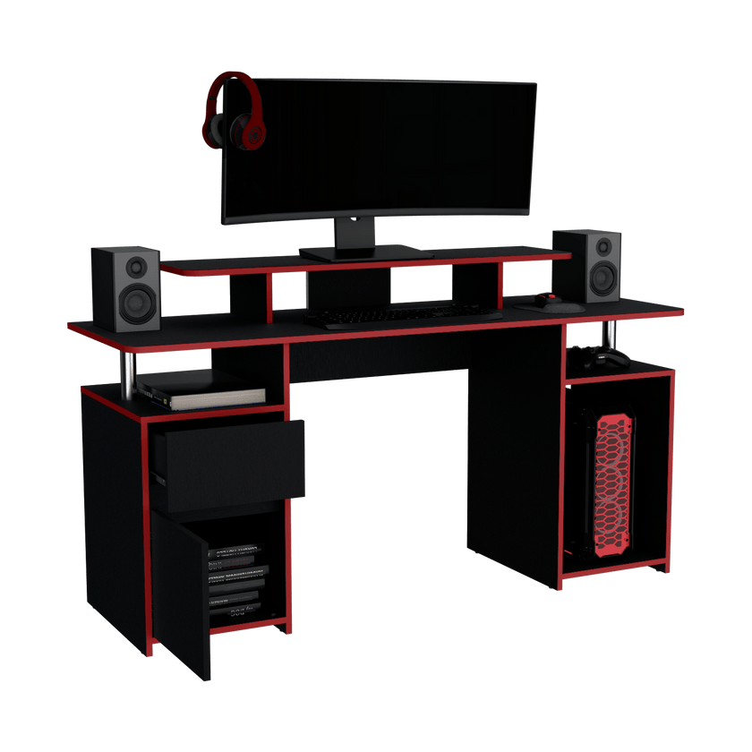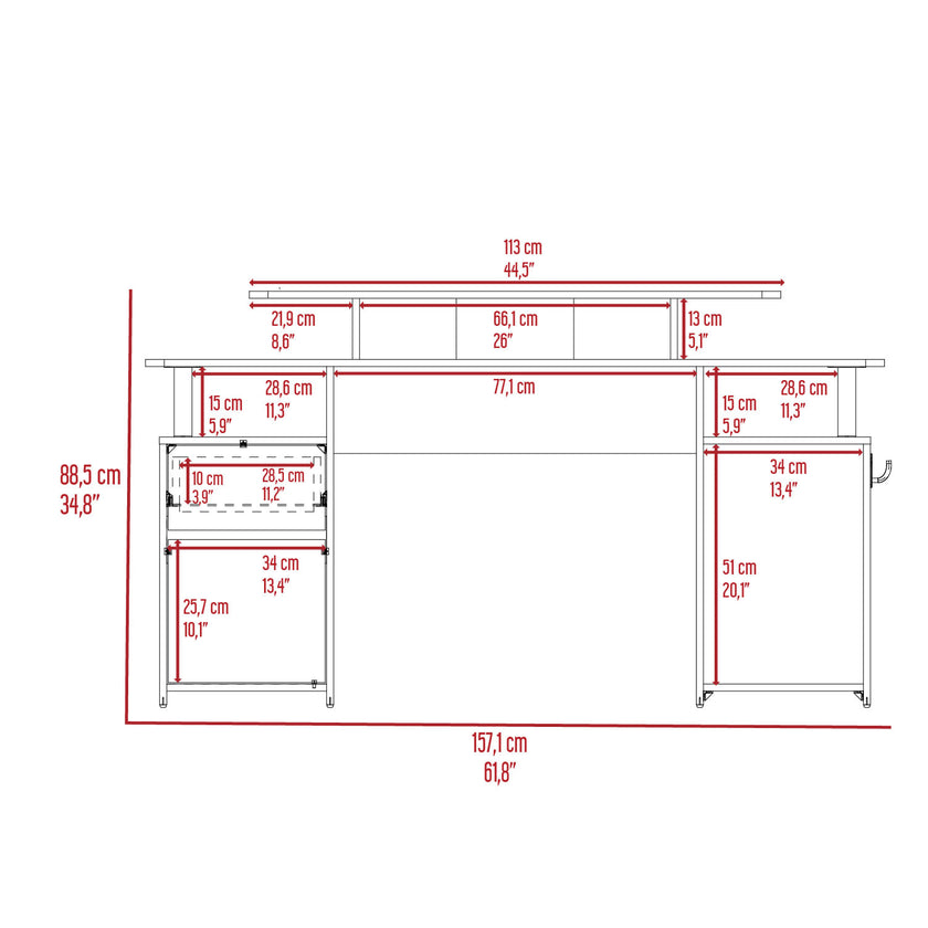 Escritorio Gamer Keria 2.0 88X167X50 Rta Wengue Rojo