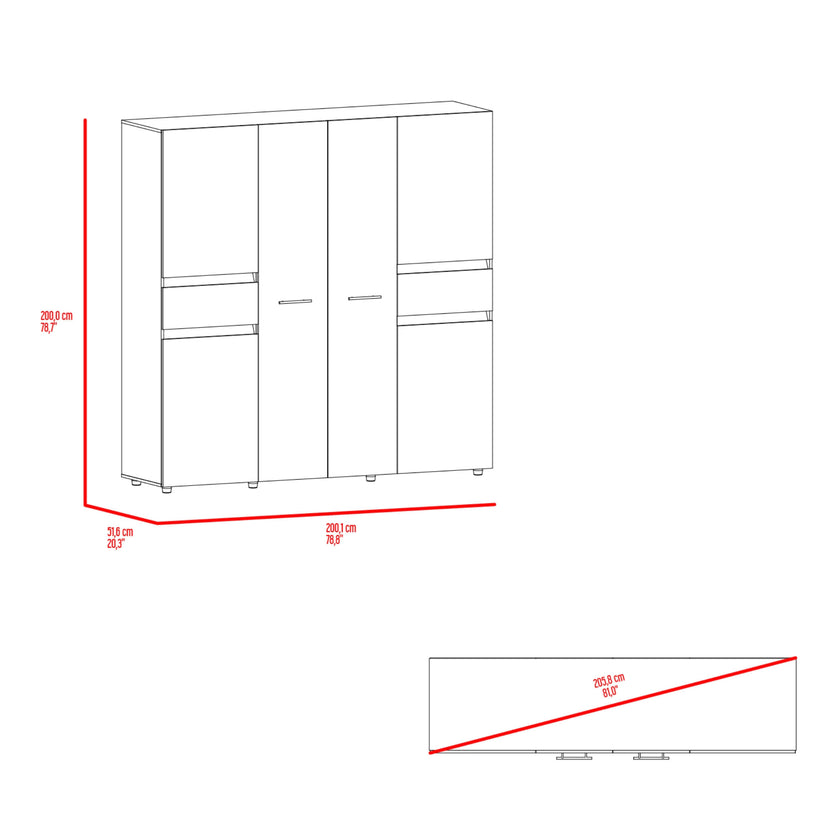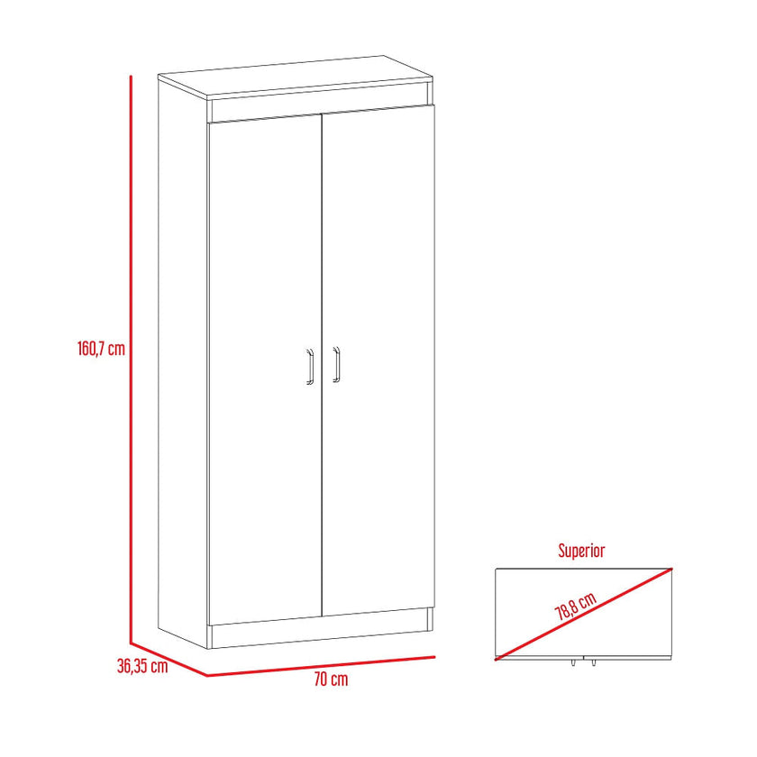 Closet 2 Puertas Tuhogar 170X60X40 Rta Fresno Blanco