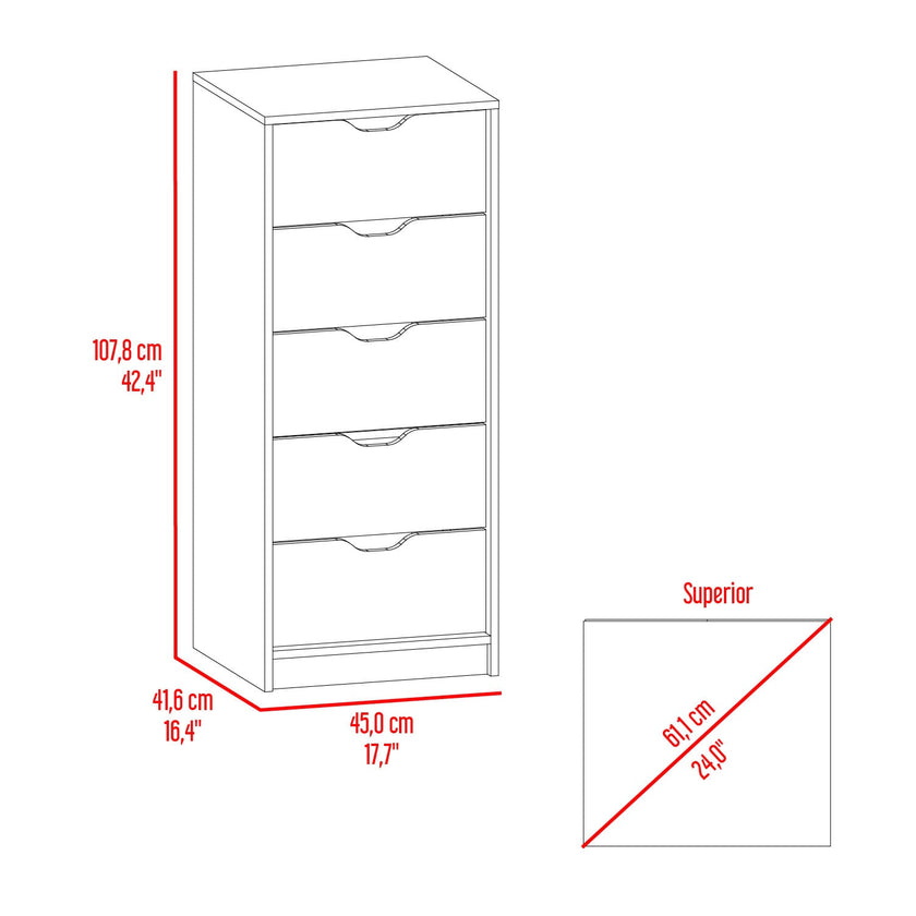 Comoda 5 Cajones Basilea 107X45X41 Rta Blanco Mqz