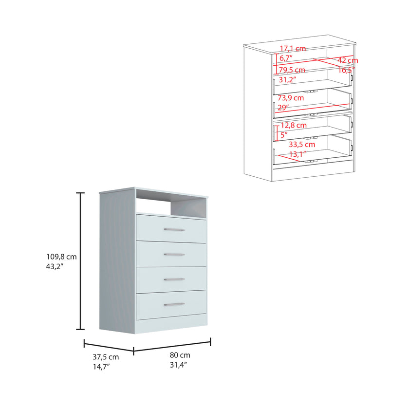Comoda Continental 4 Cajones 109X84X43 Rta Blanco Zf