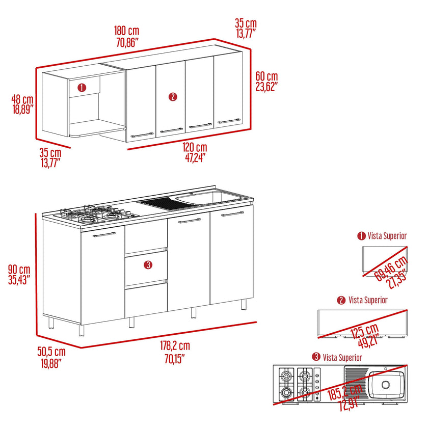 Cocina 180 Erie Rta Bardolino Blanco Meson Izq
