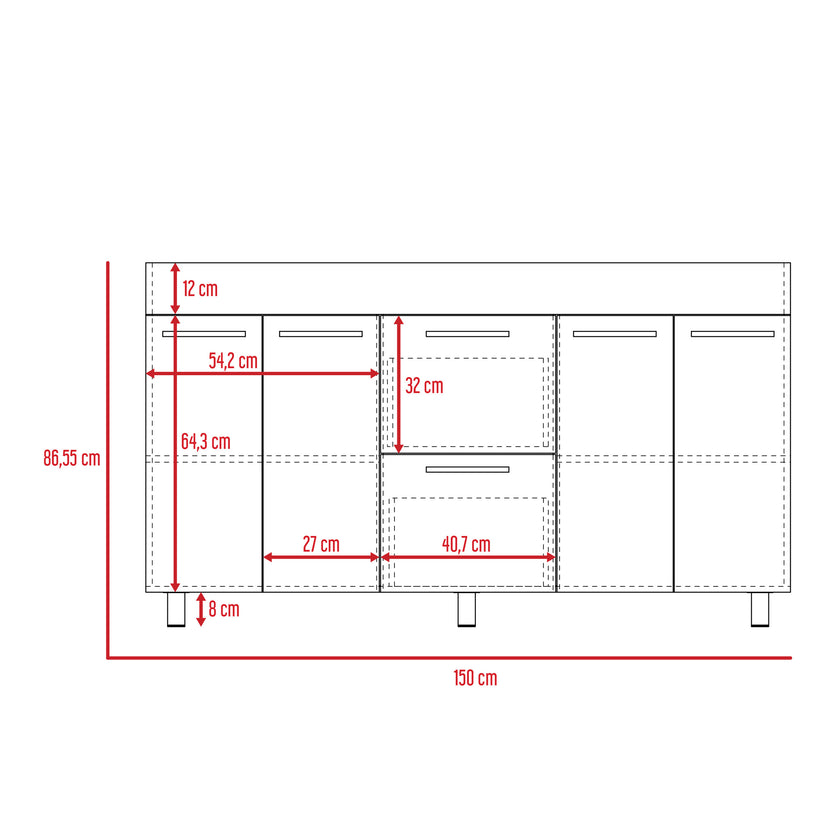 Mueble Inferior De Cocina 150 Luna Rta Wengue + Miel
