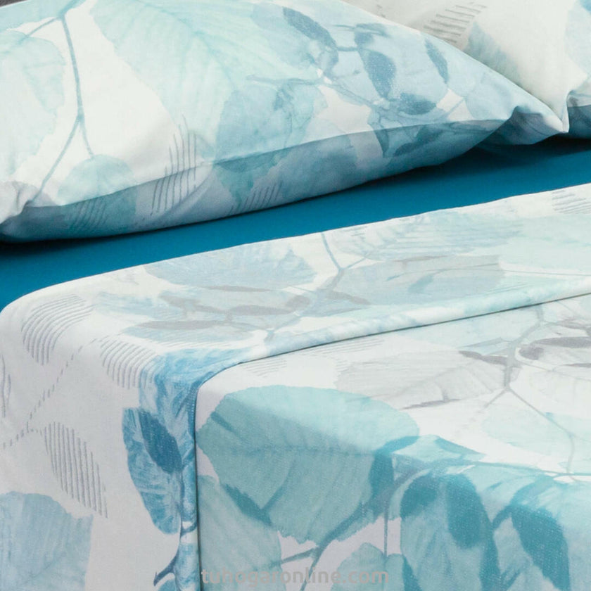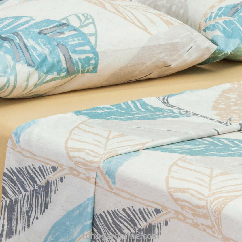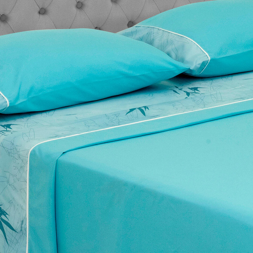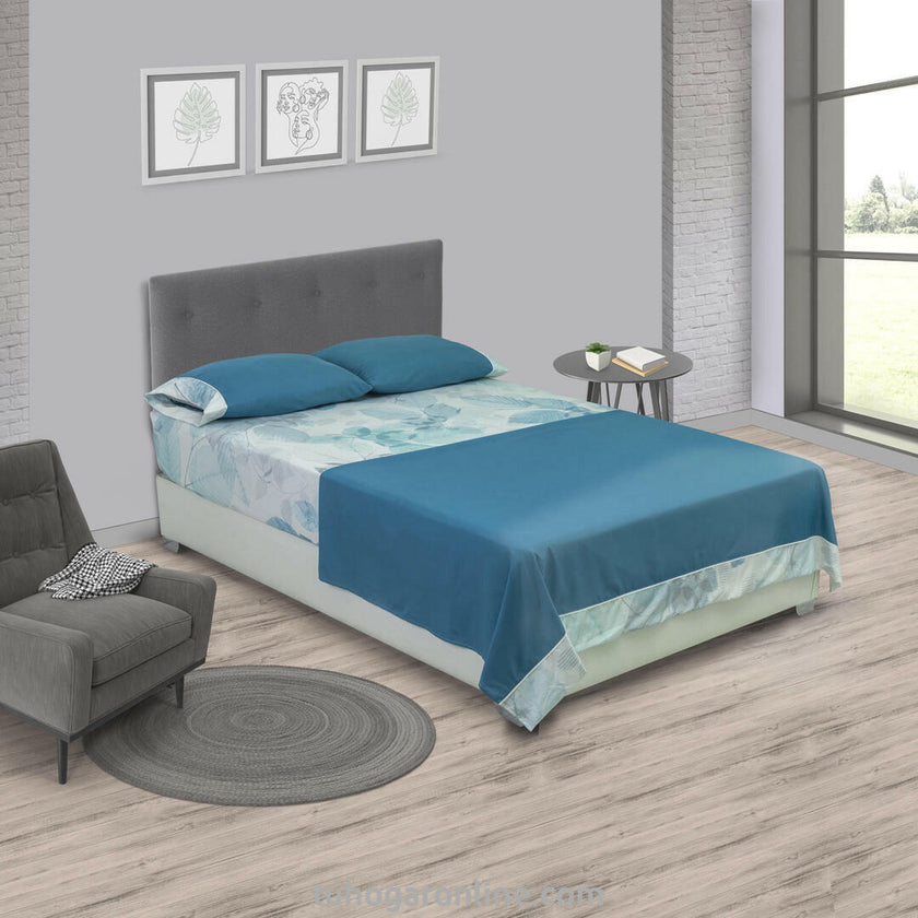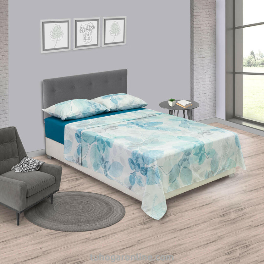 Juego De Sábanas Línea Barcelona Ajustable Ramas Sobresabana Aguamarina Solido Confortable
