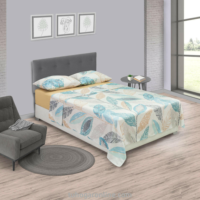 Juegos De Sábanas Microfibra Suavizada Linea Cosmopolita Aguamarina Floral Confortable