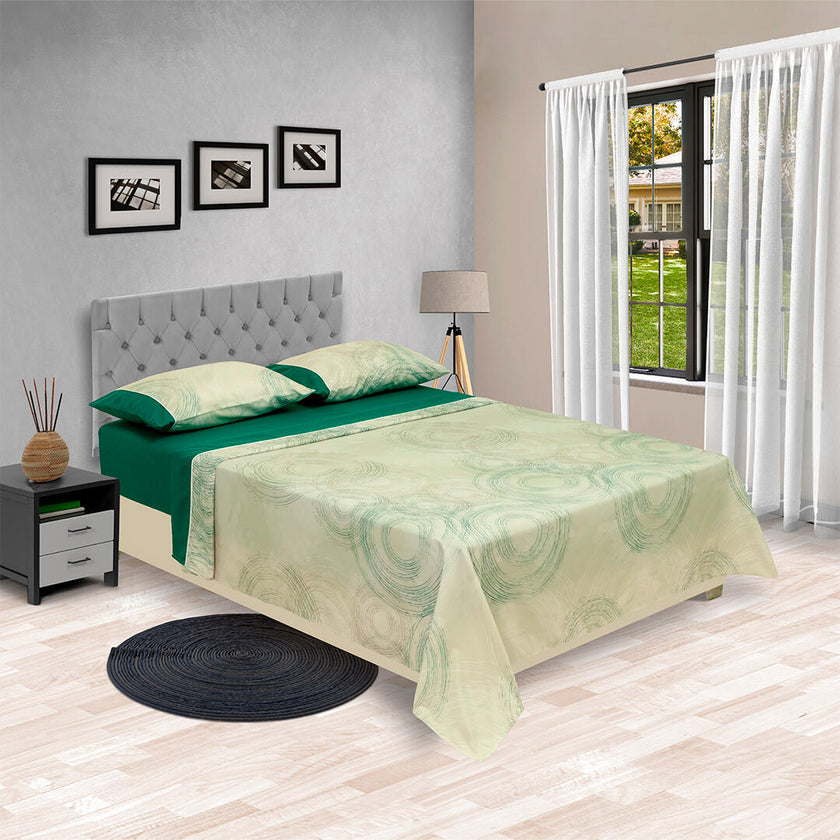 Juego De Sábanas Línea Barcelona Ajustable Fondo Verde Oscuro Sobresabana Círculos En Espiral Confortable