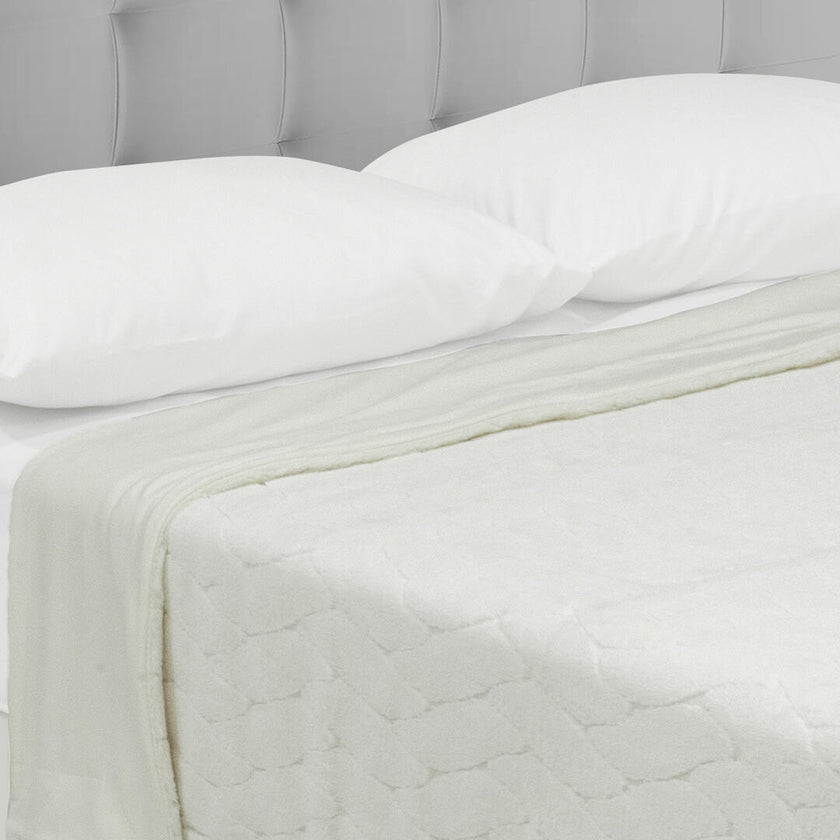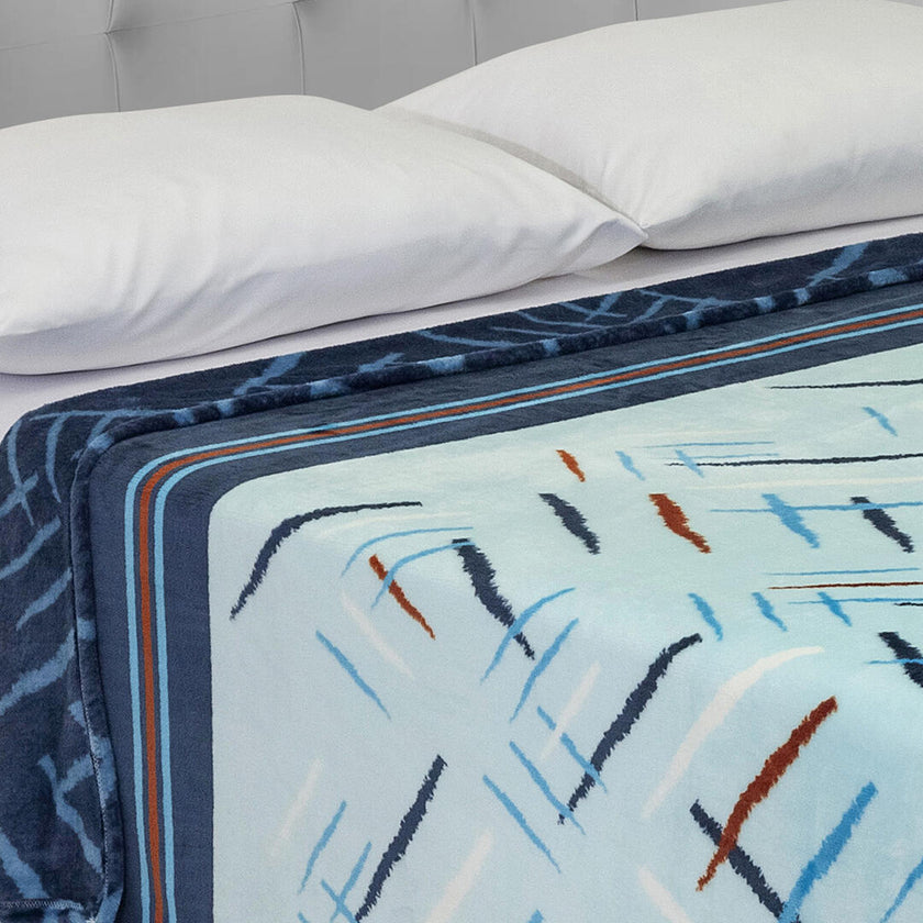 Cobija Piel De Durazno Estampada Líneas Entrelazadas Blancas Fondo Azul Claro