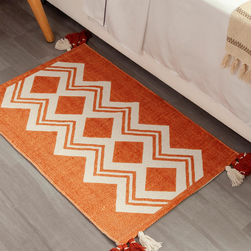 Tapete Tejido Diseño Artesanal Fondo Naranja