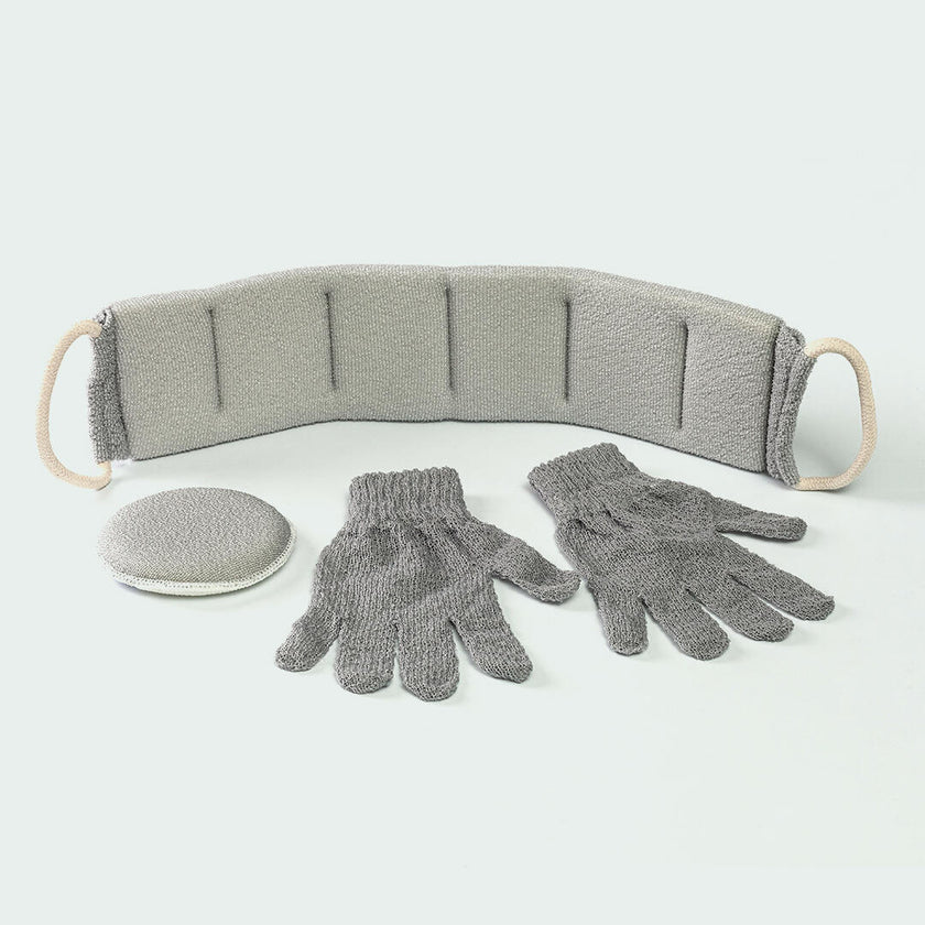 Kit De Baño Gris Limpiador De Espalda, Esponja Exfoliante Facial, Guante Exfoliante Corporal